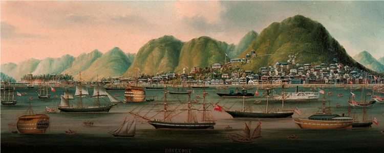 The term ‘Chinese export painting’ was coined by Western art historians,3 following the precedent set by the term ‘Chinese export porcelain’, in order to distinguish this type of painting (yáng wài huà or wài xiāo huà) from traditional Chinese (national) painting (wén rén huà or guó huà), making clear that these works were made for export to the West.4 These artworks are also called ‘China trade painting’ or ‘historical painting’, positioning them in the historical China trade, the most important forms of which were porcelain, tea and silk. The terms are used interchangeably in Europe, Asia and North America. From the place and time of their production in Canton and Macao, later spreading to Hong Kong and Shanghai, until long after, these paintings were described by their contemporary makers as ‘foreign paintings’, ‘foreign pictures’, ‘paintings for foreigners’ or ‘Western-style paintings’; whilst foreign, Western buyers in that period just called them ‘Chinese paintings’.