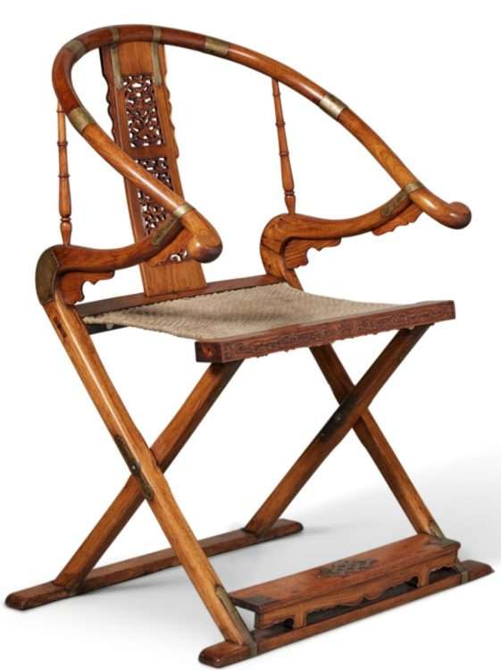 A very rare and important 'huanghuali' folding horseshoe-back armchair (Jiaoyi), Late Ming / early Qing dynasty, 17th century