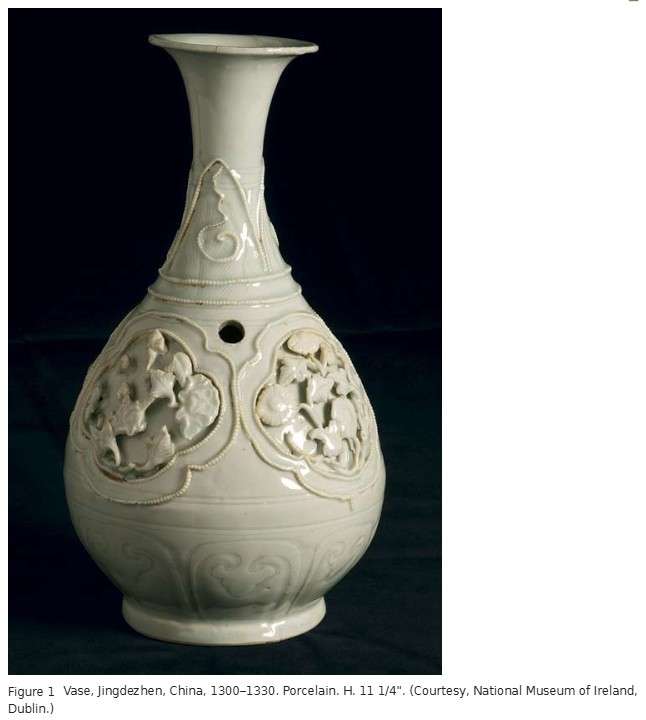 Figure 1Vase, Jingdezhen, China, 1300–1330. Porcelain. H. 11 1/4". (Courtesy, National Museum of Ireland, Dublin.)