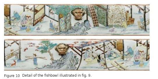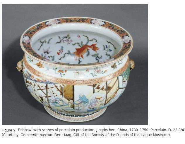 This large fishbowl (fig. 9) is one of a small number of pieces of self-referential porcelain illustrated with scenes showing the different steps in porcelain production in Jingdezhen (fig. 10). Probably made for a Chinese or European merchant active in the porcelain trade, it helps explain why Chinese porcelain was such a successful product.