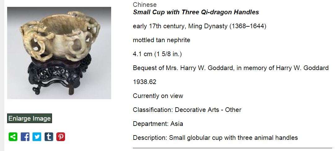 - Late Ming Nephrite Cup with Dragons