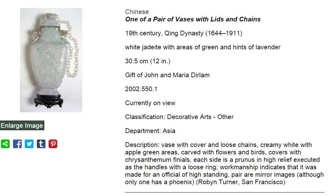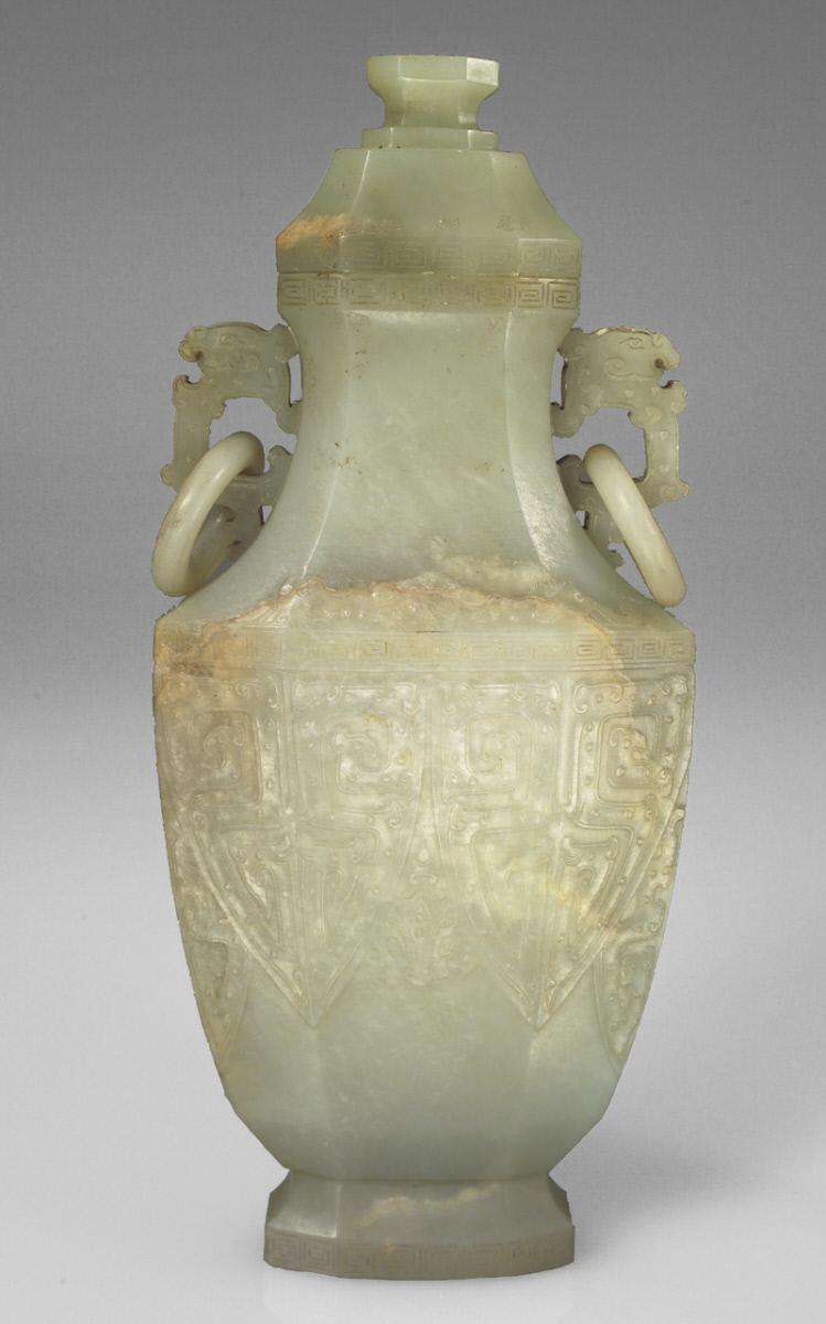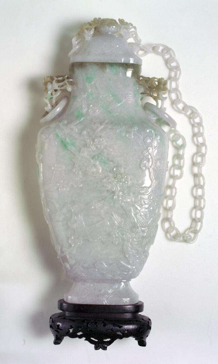 - det, 19th C. jadeite Vase with Chains