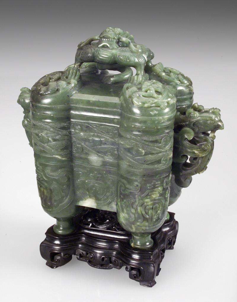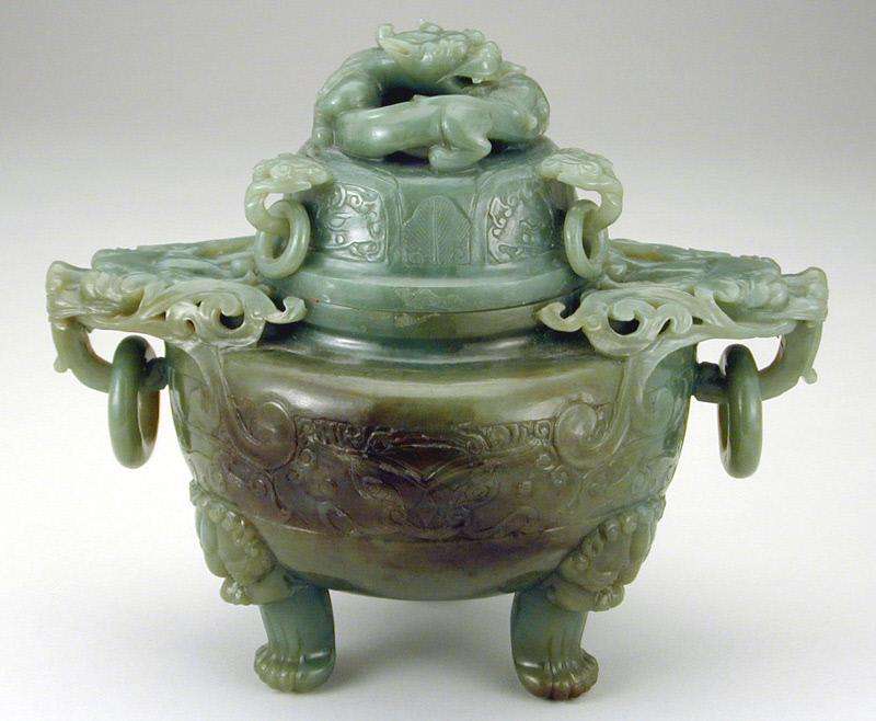 - det, 18th Spinach Green Nephrite Incense Burner