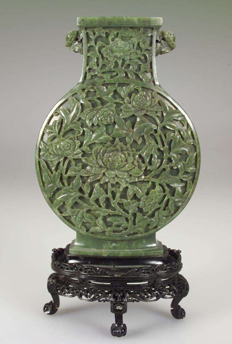 - det, Early 19th C. Carved Jade Moon Flask