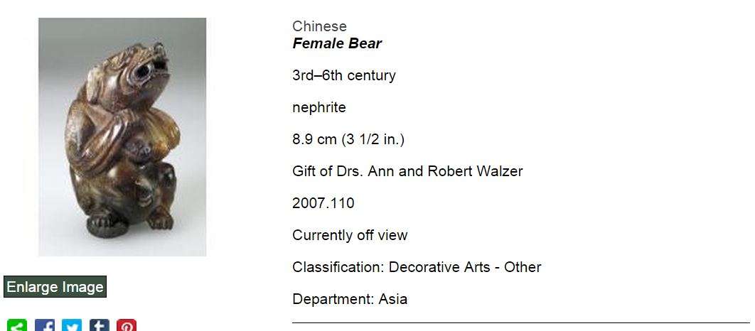 - detail, 3rd to 6th C. Carved Female Bear Figure