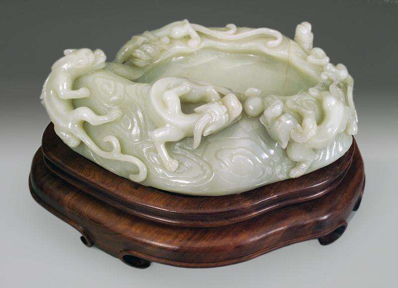 - Large 20th C. Spinach jade Dragon basin
