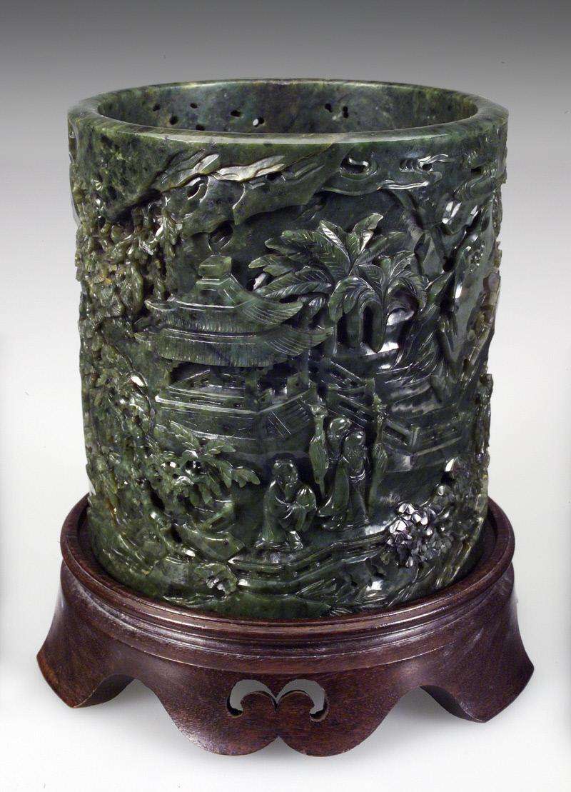 - Carved Kangxi Jade Brush Pot