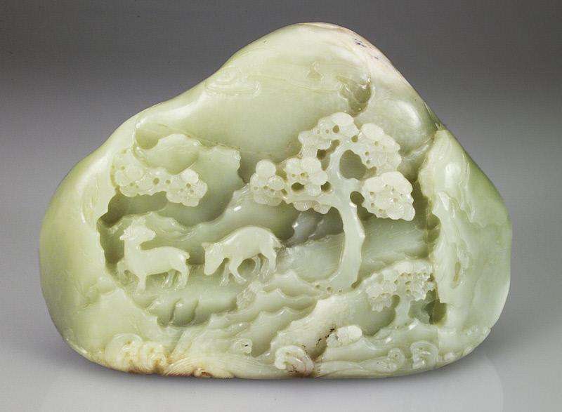 - Qing Jade Carved Boulder with Deer