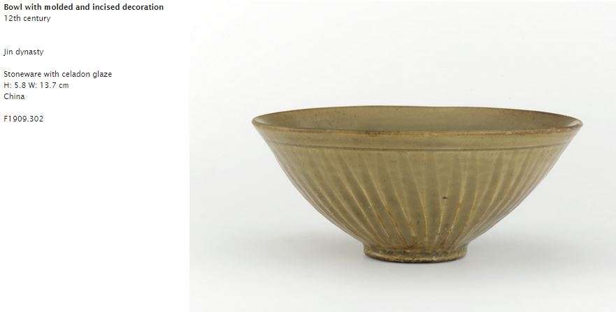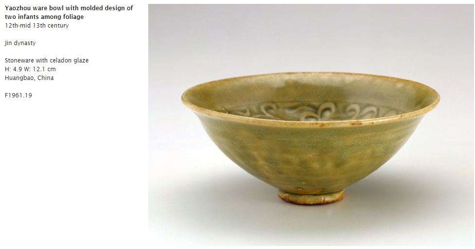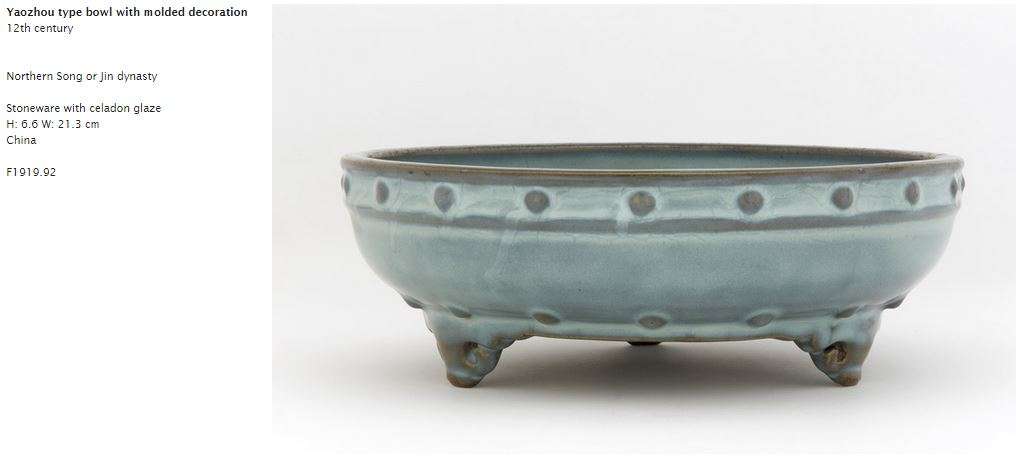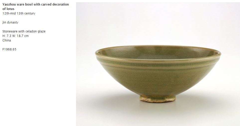 - Yaozchou Northern Song or Jin dynasty Bowl, decorated with a celadon glaze and molded reliefs. 12th C