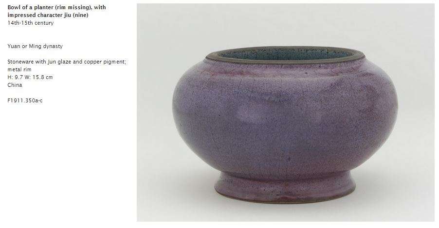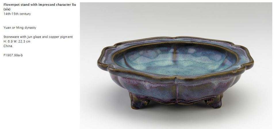 - Yuan to Ming Dynasty flower pot stand with Jun Glaze, 14th to 15th C.