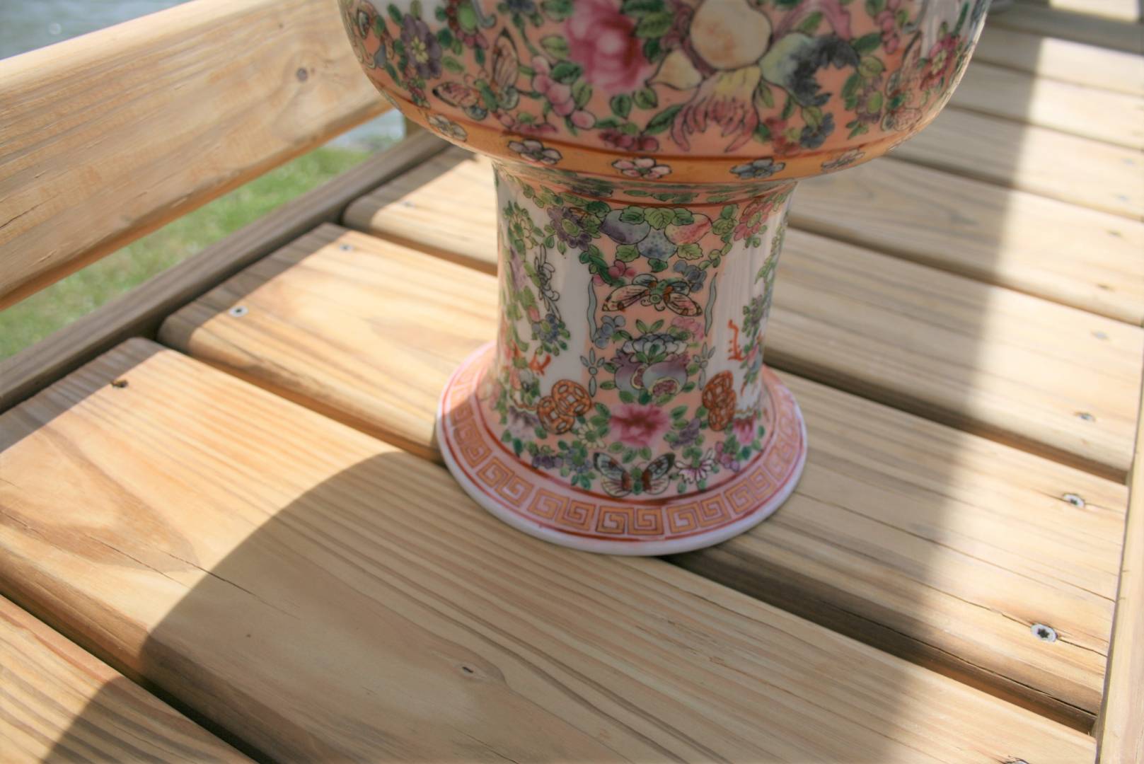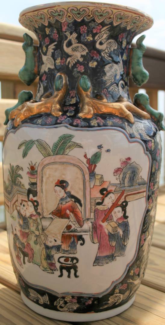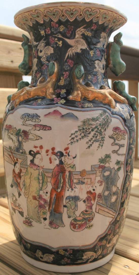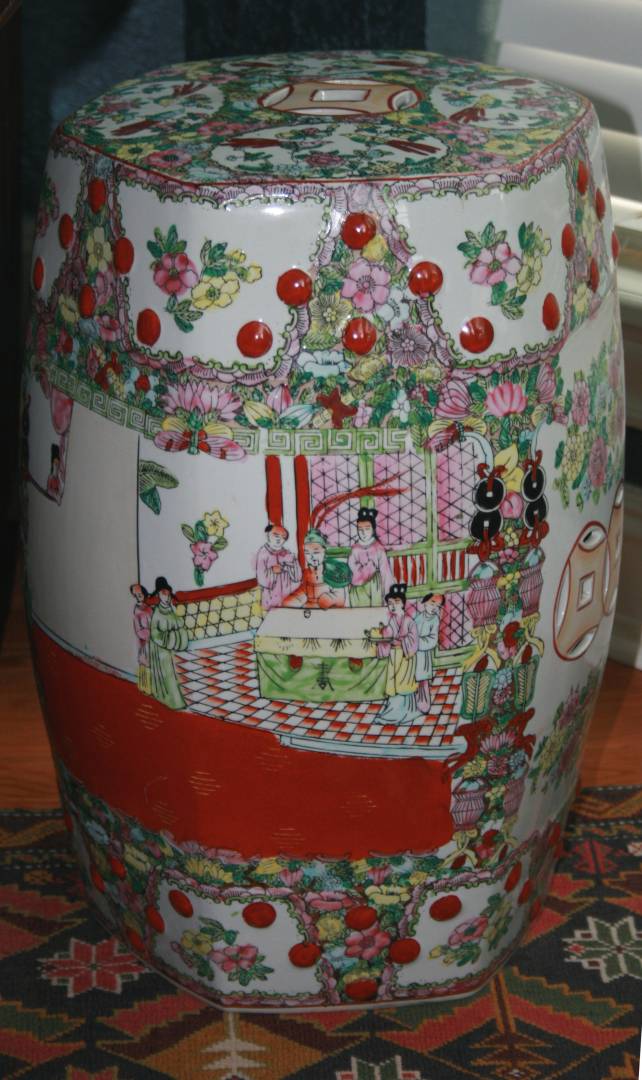 Here is an example of a modern, as in nineteen-eighties, Hong Kong one with the stretched mark on the bottom. Peter said it still had a decorative value of 125 to 175. I did some research on that Hong Kong facgtory, the faces look better than the the garden seat from the garden seat from the early nineties, no one passed this vase off as an antique either, I only paid 60.00