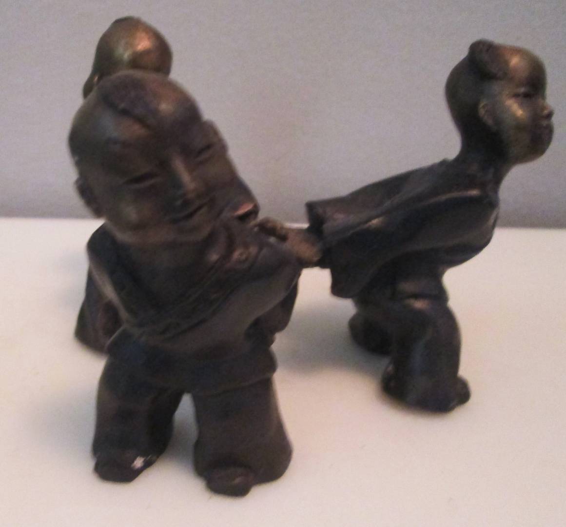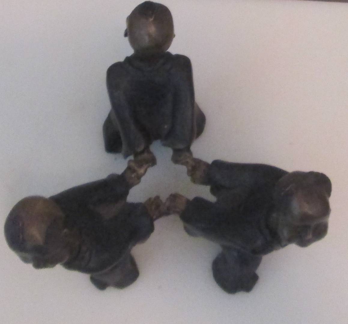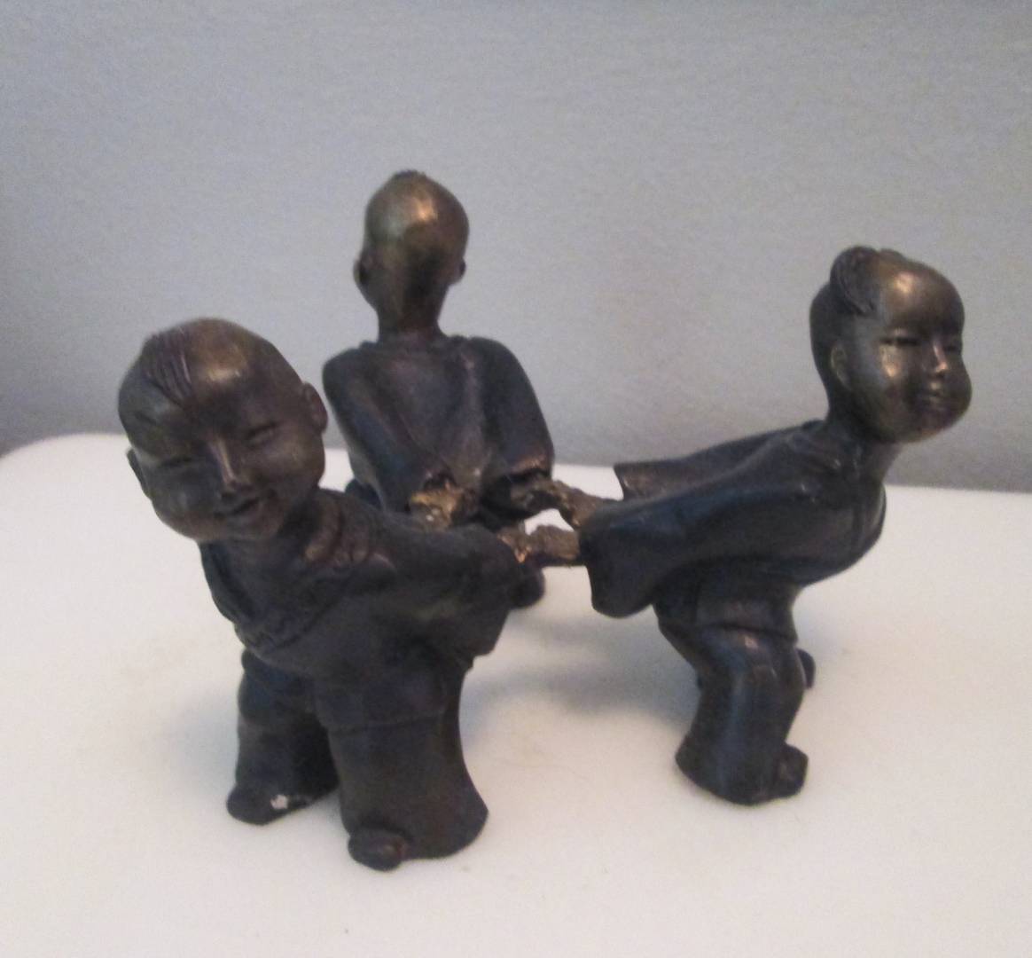 This is a bronze piece with 3 boys holding hands in a circle. It is super heavy and did have those felt pads on the bottom when I got it. I took them off to see if there were any marks on the bottom. Each figure is distinct. Has anyone seen anything like this before and does it look modern? Any thoughts and ideas are welcome.