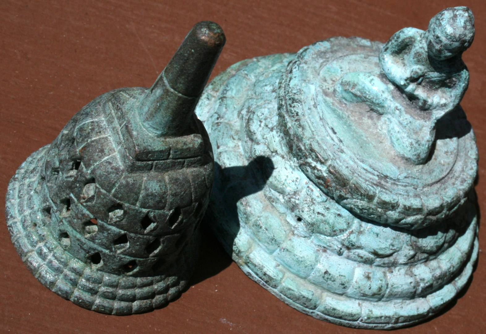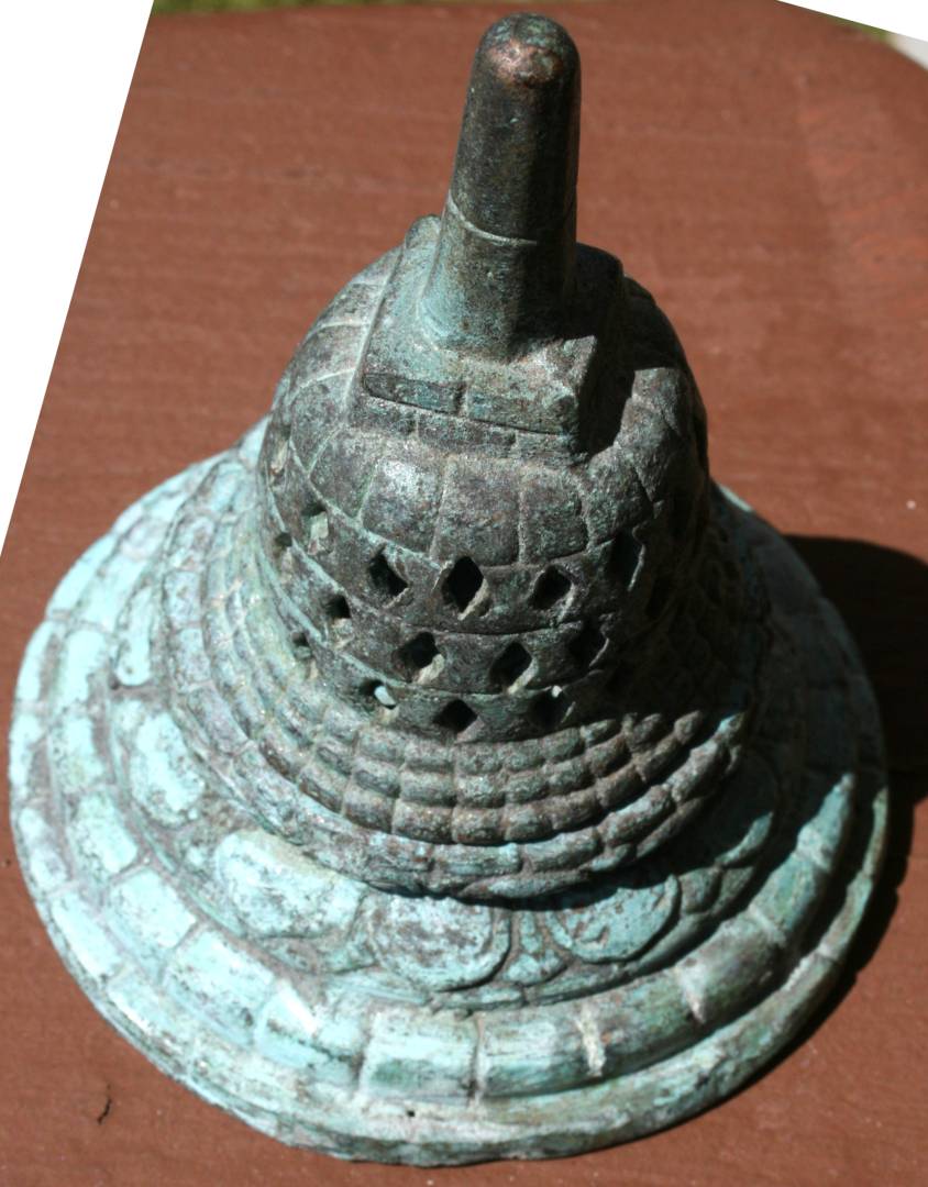 The bluish green corosion reminds me of the the stupa seated Buddhas with domed anda covers being sold by vendors on the grounds of the Borobudur Temple grounds in Central Java, which were all brand new and not bronze. Away from home at the moment but I'll post a photo for you to compare the patina when I return home. My guess is decorative. Jakarta, one of the few cities in the world of over 7 million people (over 10 million now), where chickens are crossing the road to get to the other side.