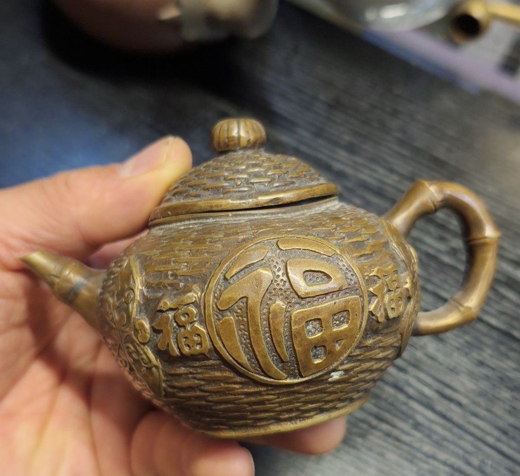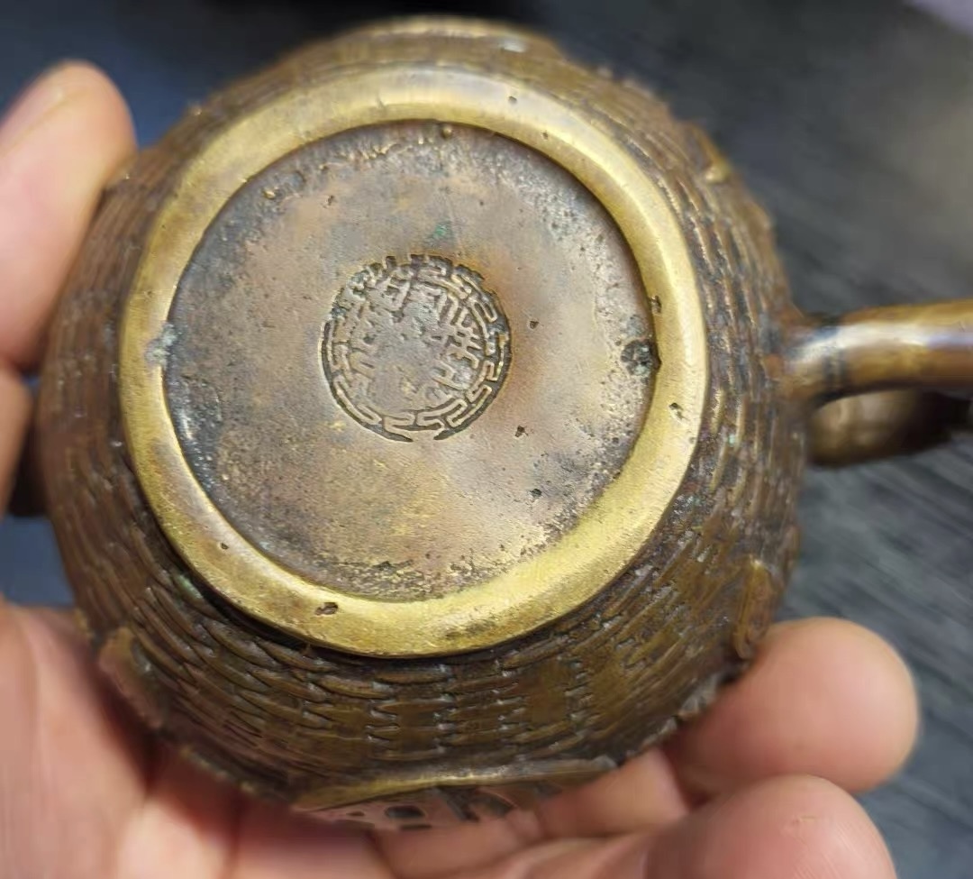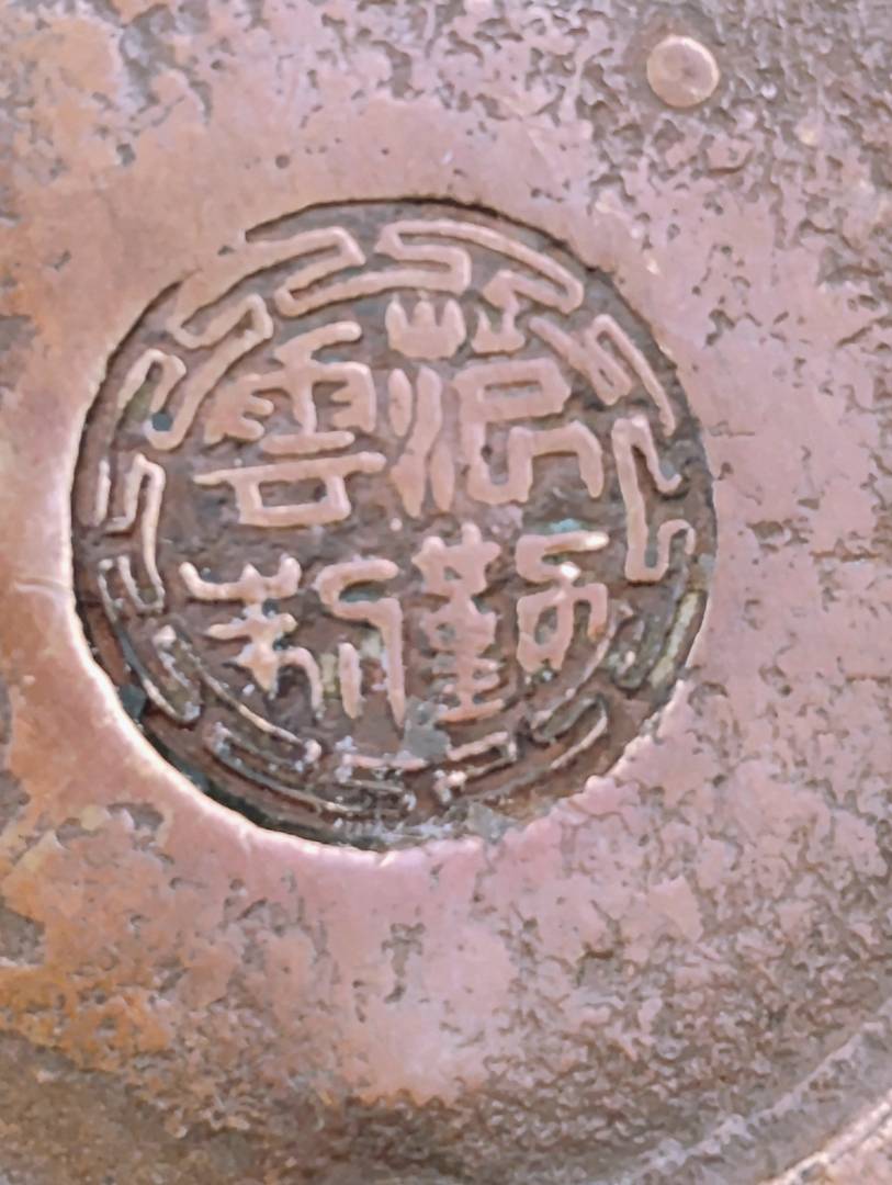 I really like this pot, I believe it's brass but don't know the age or the seal and have tried researching it and haven't found one like it so far. Thank you in advance