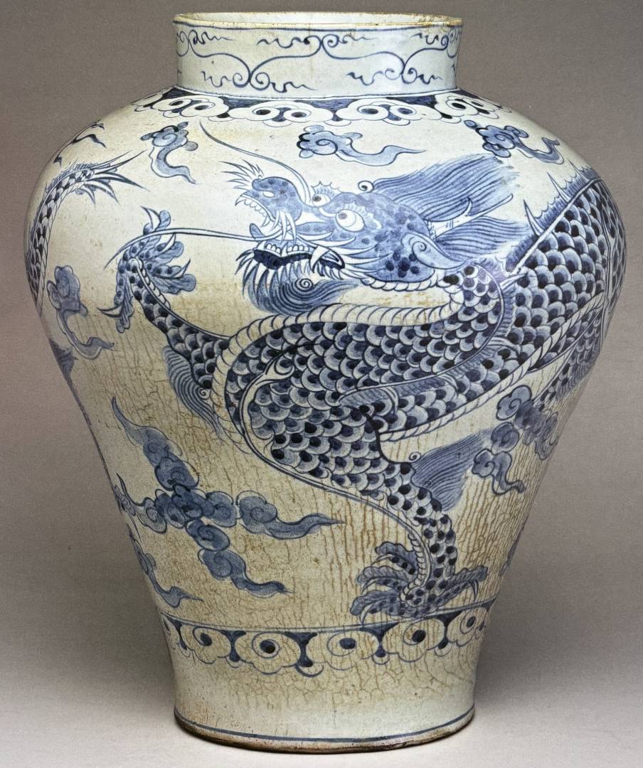 Attach images of a large, H. 41 cm, Korean dragon jar from the Guangzhou official kiln, attributed to late 18th - early19th centuries and held in the collection of National Palace Museum, Taipei …