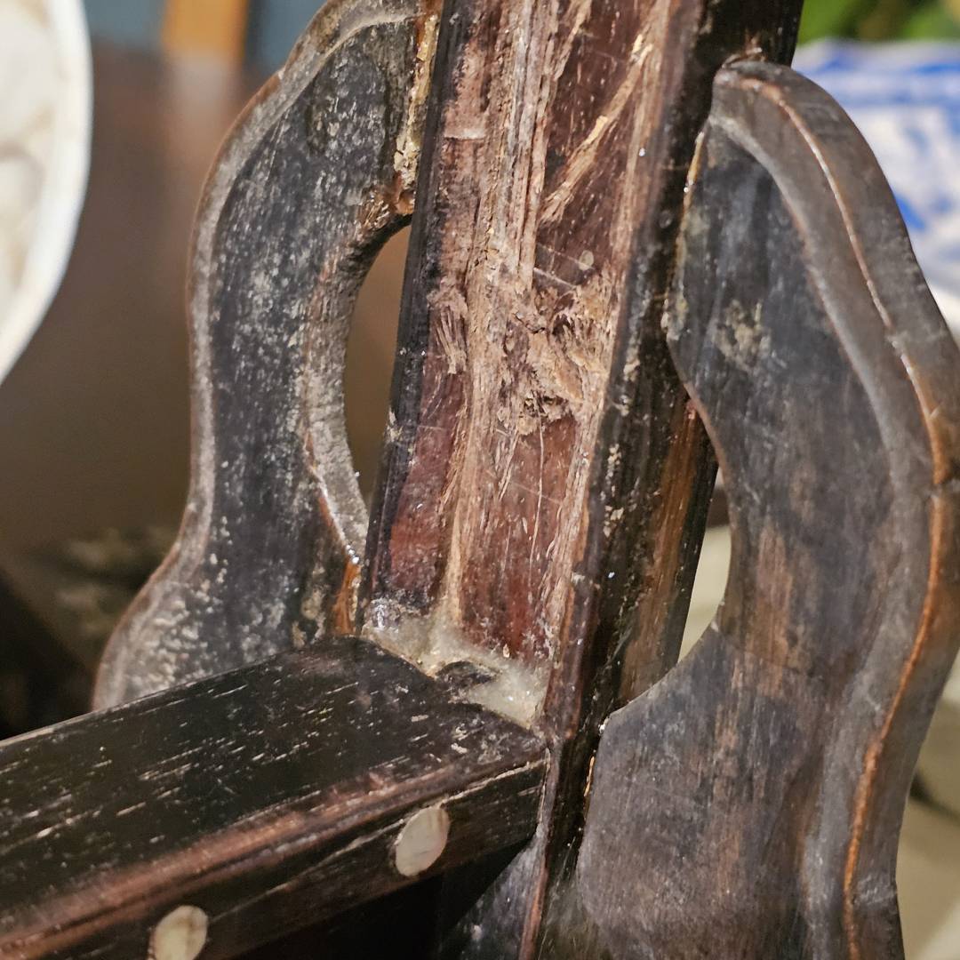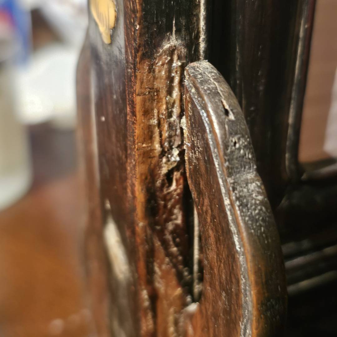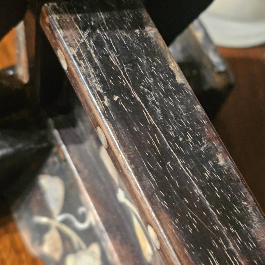 - The two blocks on the side of the columns are cut short, likely broke off and discarded with the back of the panel at some point when it probably collapsed apart unexpectedly. I need to identify the wood used, and if its hongmu, is rosewood appropriate to fix these two spots and replace them?