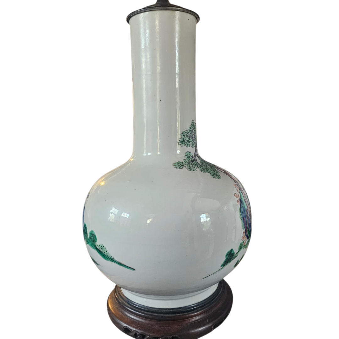 I picked this up today. Ive been digging a bit and its possible it may be Yongzheng period. The vase has been converted to a lamp, it appears to have been unmarked. Its around 17 inches in height as well. Is it possible this is of the period?