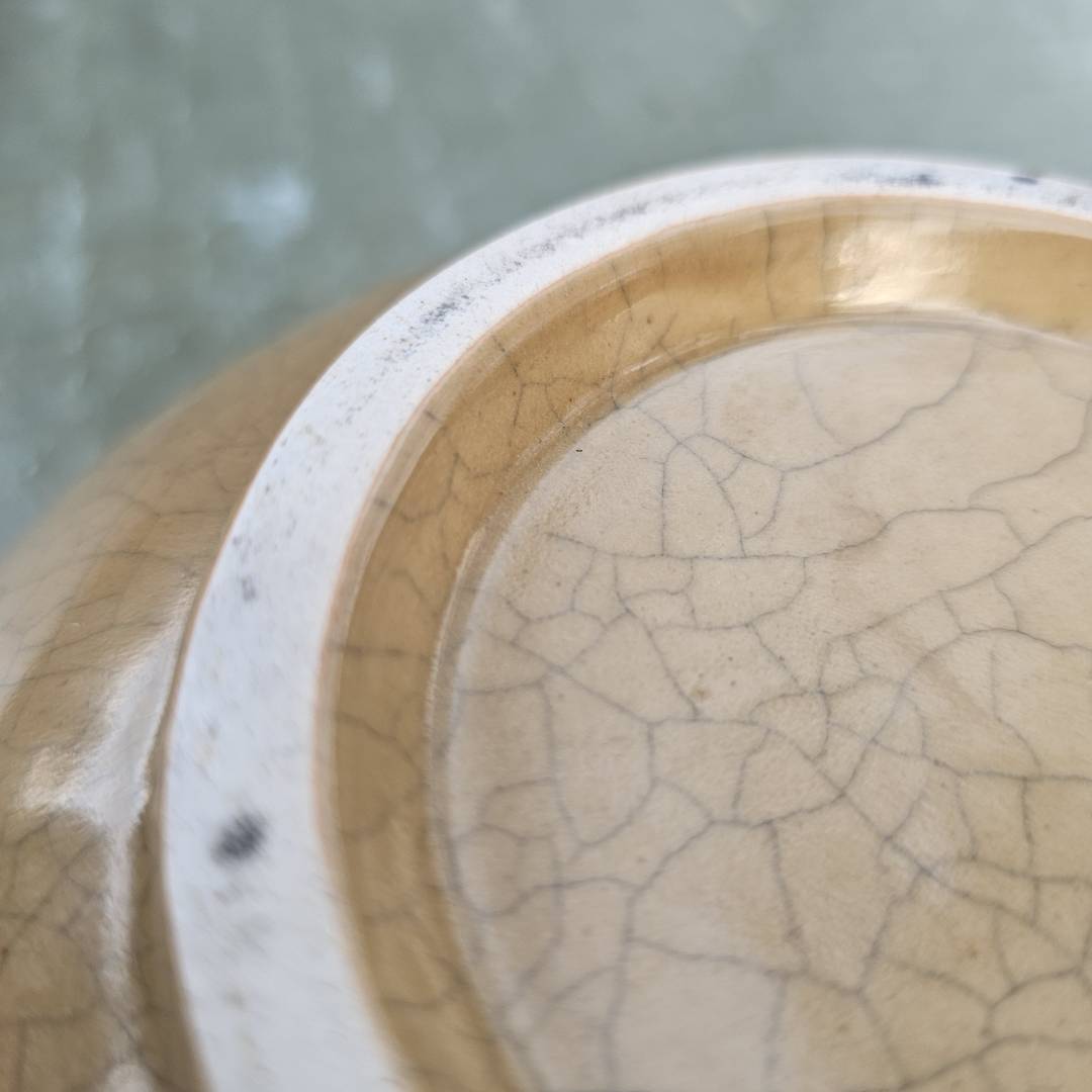 I picked this up yesterday. I wanted to know if anyone else had a guess to its age currently. Its in the style of song ge type celadon, but not sure what to make of it. Any insight is welcome.