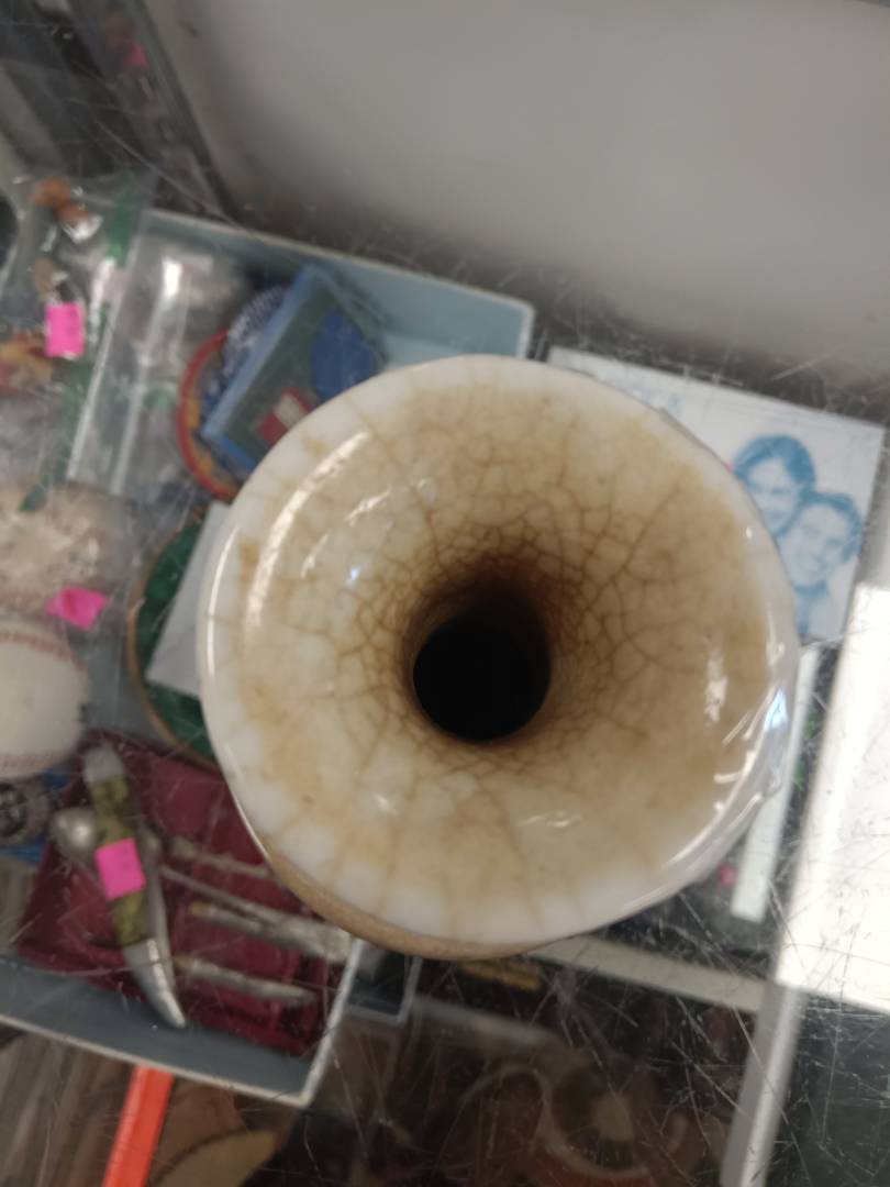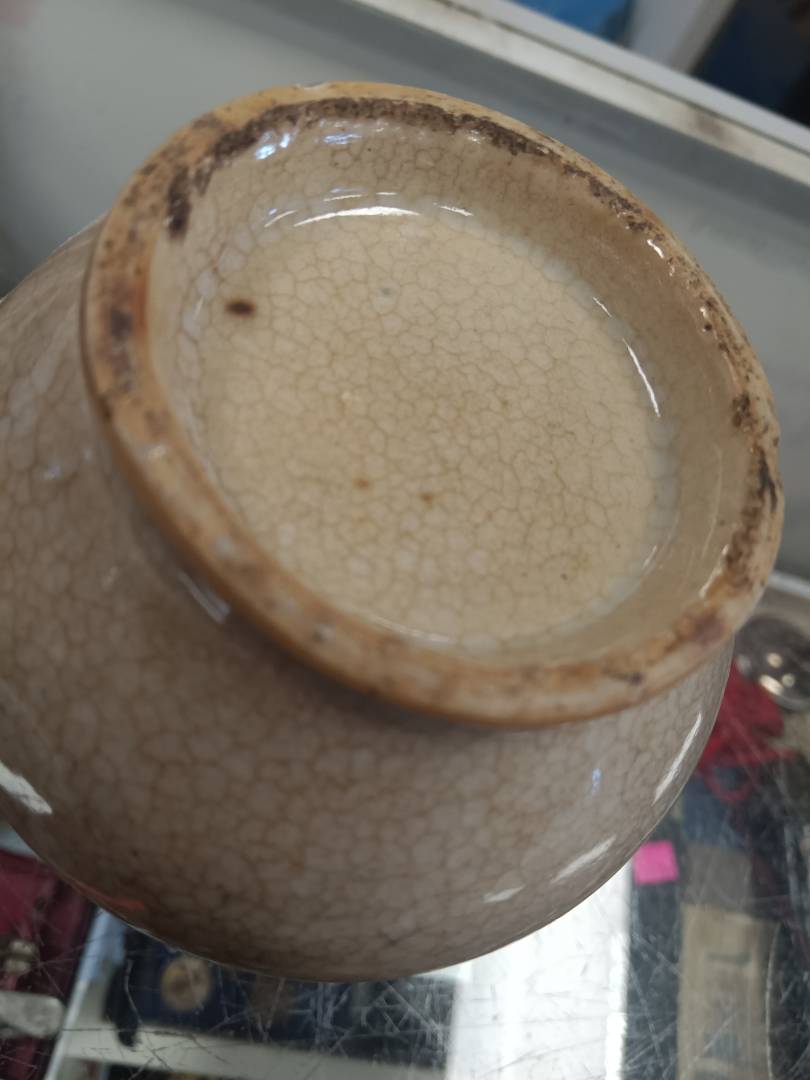 I have added more images, especially of the bottom/foot. A small chip at the bottom reveals that the porcelain is white. The inside wall of the foot is angled a bit, it is not straight (ie, 90 degree angle).