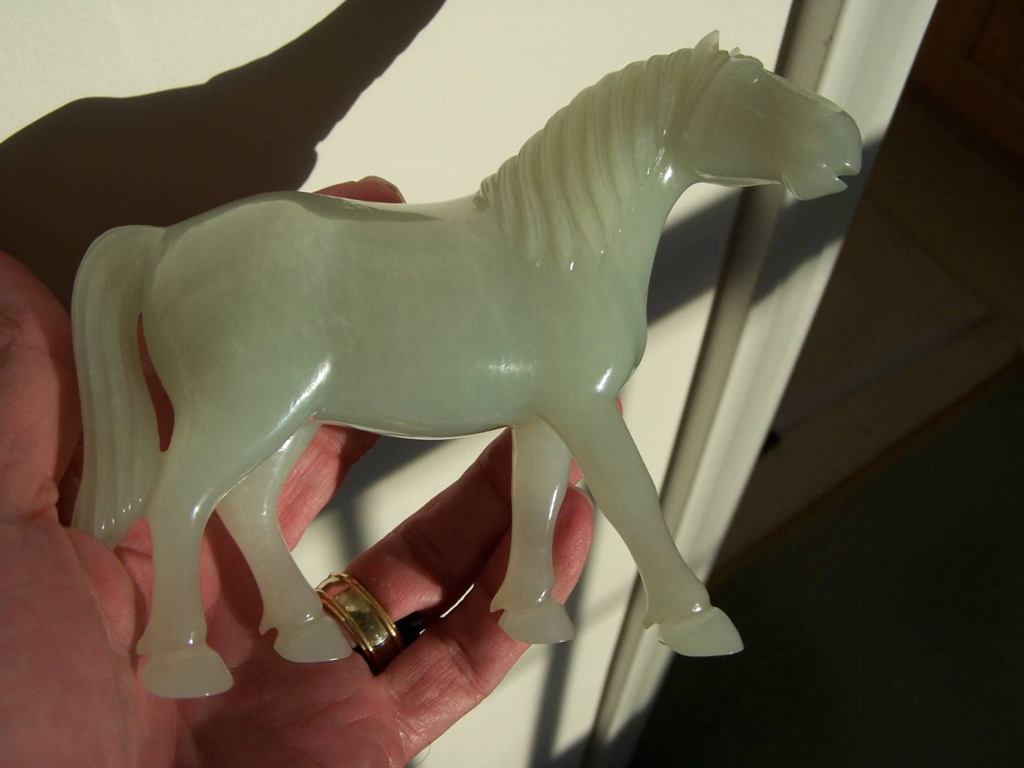 The horse is pretty, is it Hetian jade? Never stand behind a horse, as a friend of mine found out the hard way.