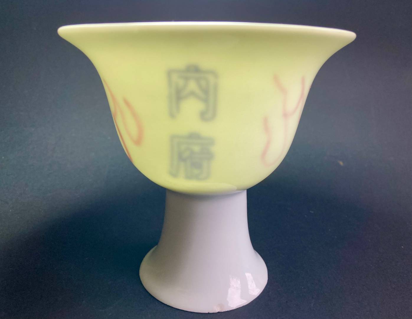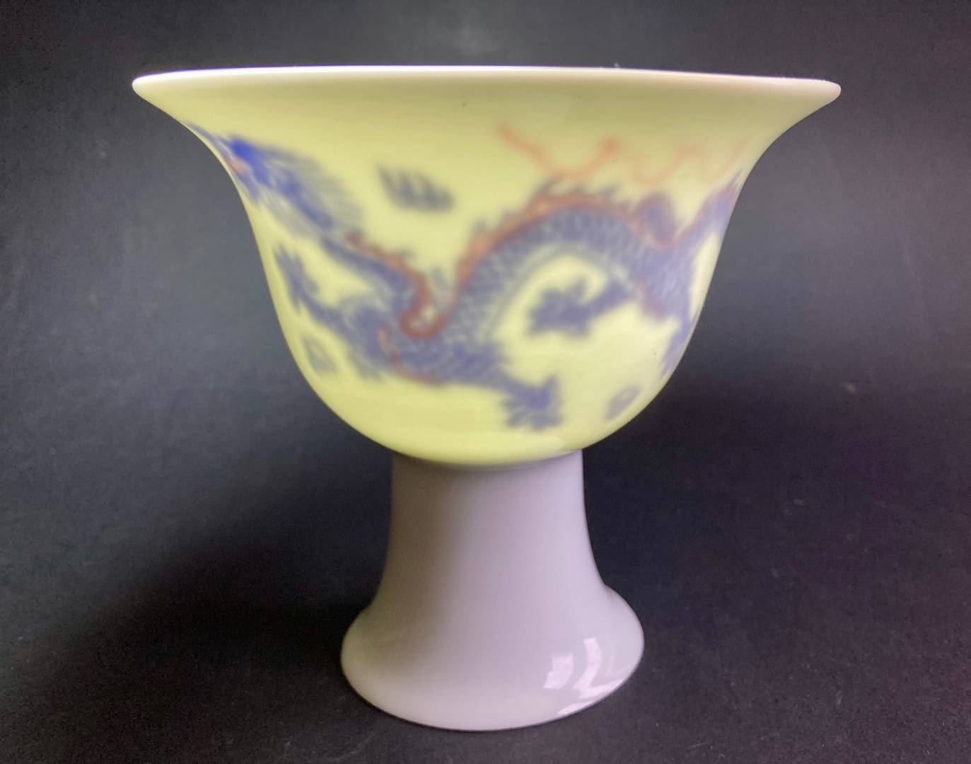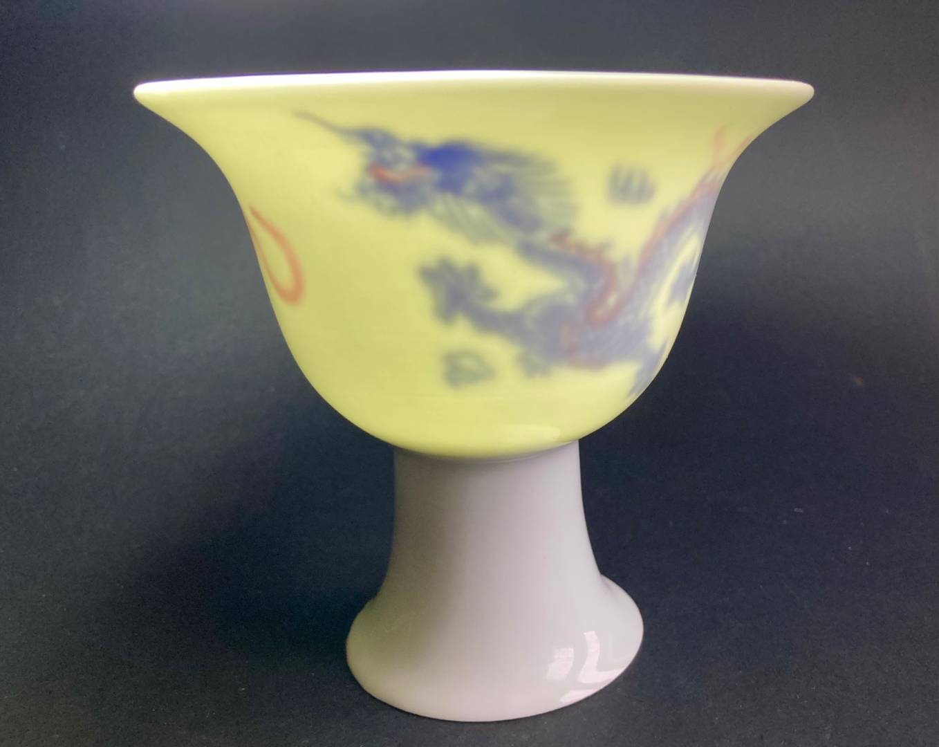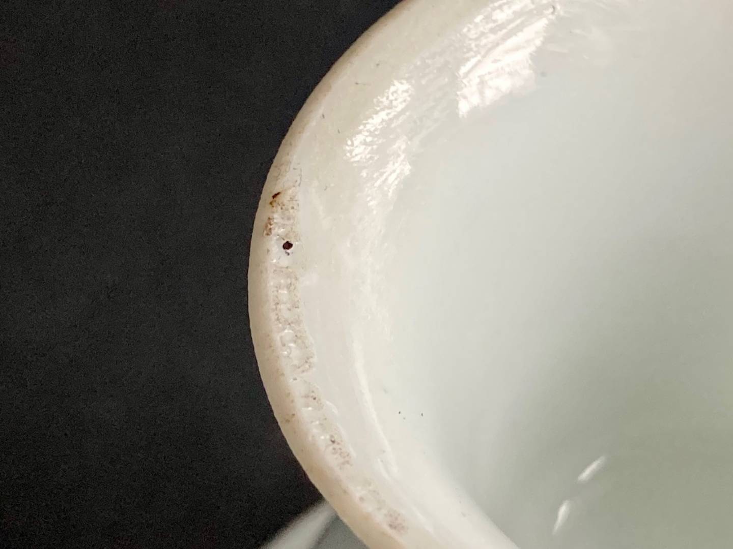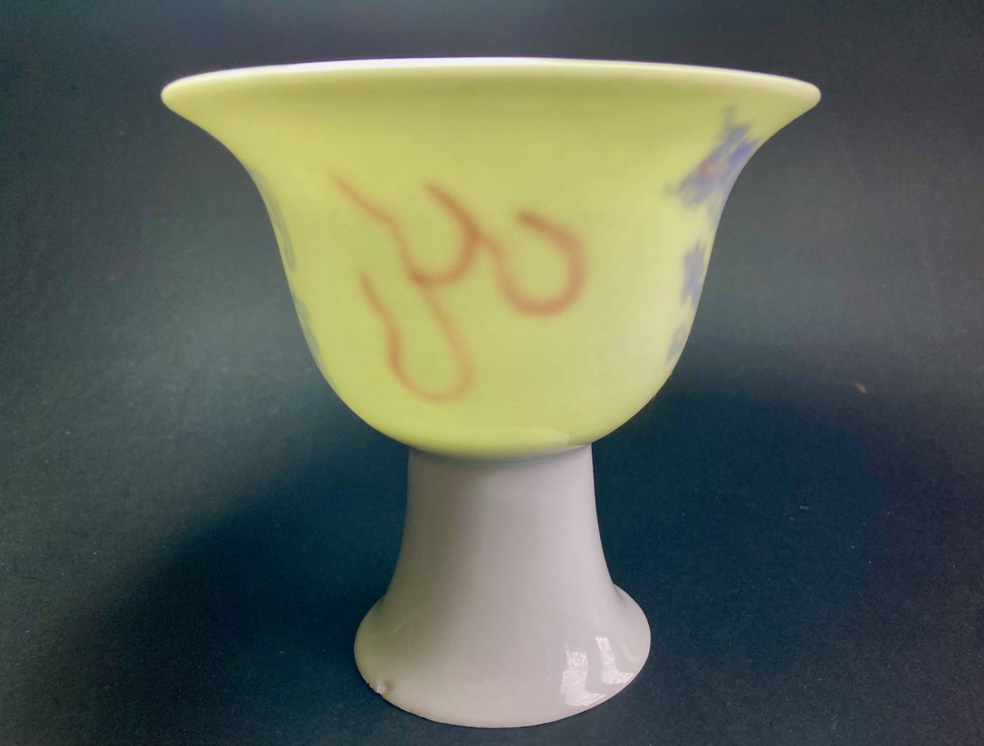 The cup sits with a slight lean but is very nicely potted with the stem being very fine and bordering on eggshell.