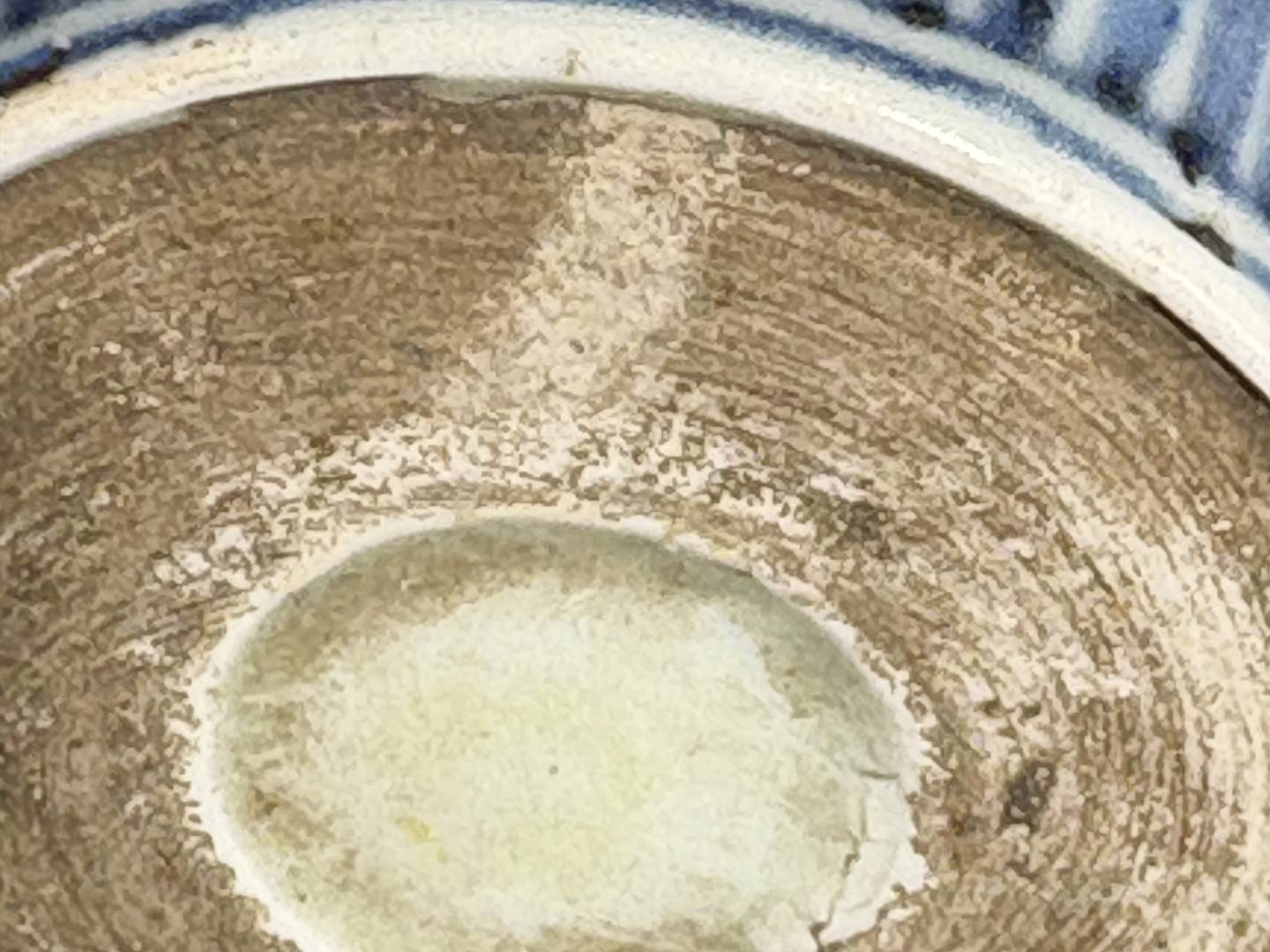 The foot is unusual for such a small item. Also it looks like artificially dirtied and scratched.