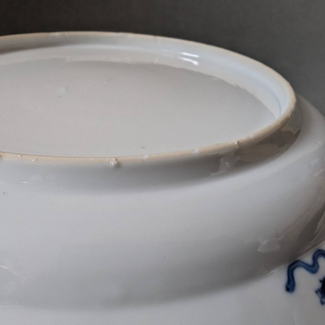 Hi guys, just wondering if anyone would be able to help me figure out if this dish is kangxi or revival. I'm not sure, it seems to have features of both, on the one hand the body is rather white and there is some orange peel effect to the front side but it also has a footrim that seems quite 18th century to my untrained eye, a few fleabites to the rim and the colours/quality of painting seem close enough to the comp I have attached.