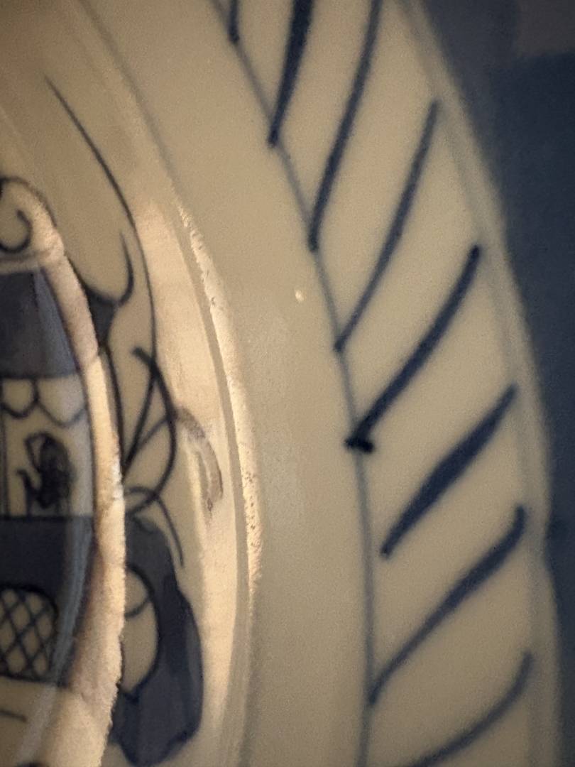Thank you Steve and Shinigami. I learned a lot in orienting myseld to this type: Probanly common but pretty Blue and White Canton. I have posted a another B & W I have which I am guessing is about the same age but has a signature an the art looks a bit better. Separate post called "Another...."