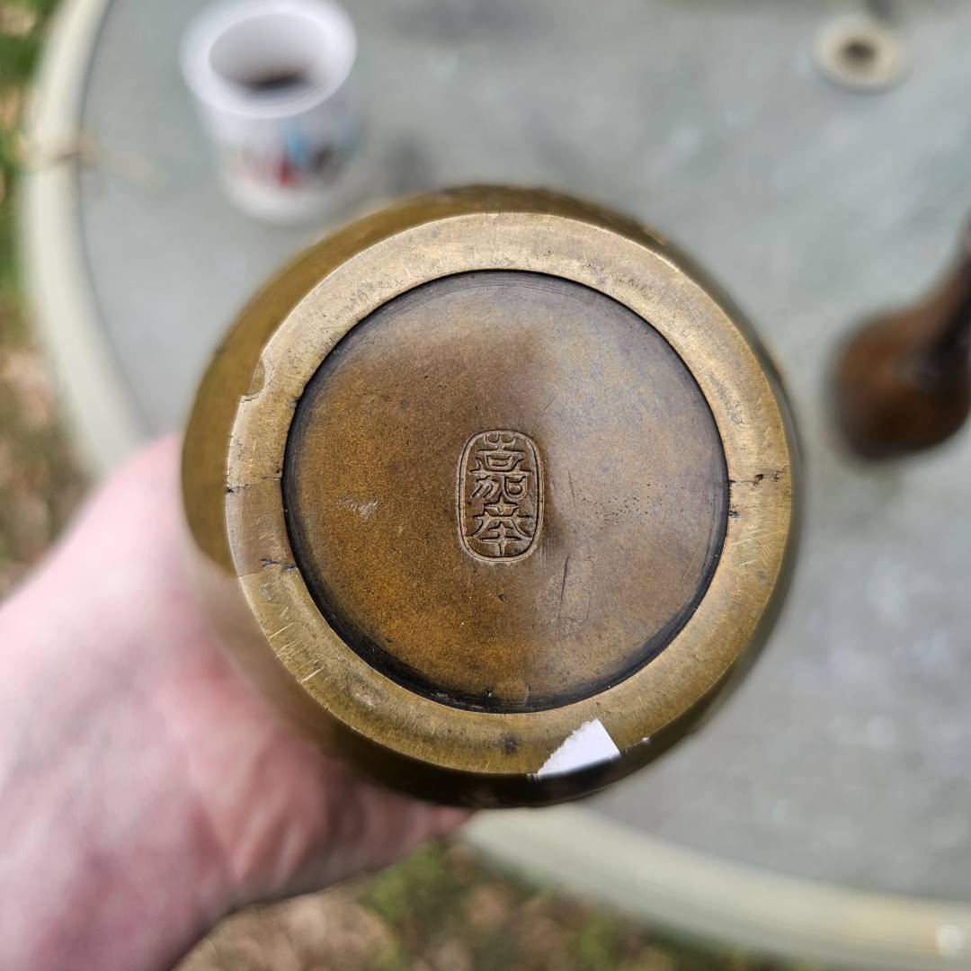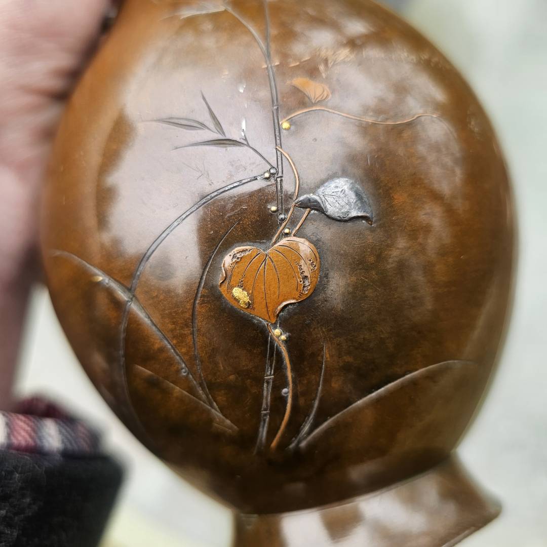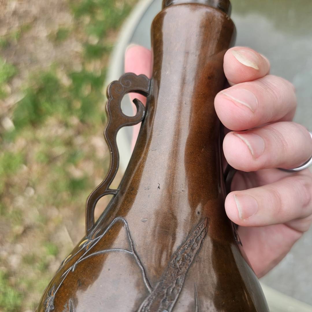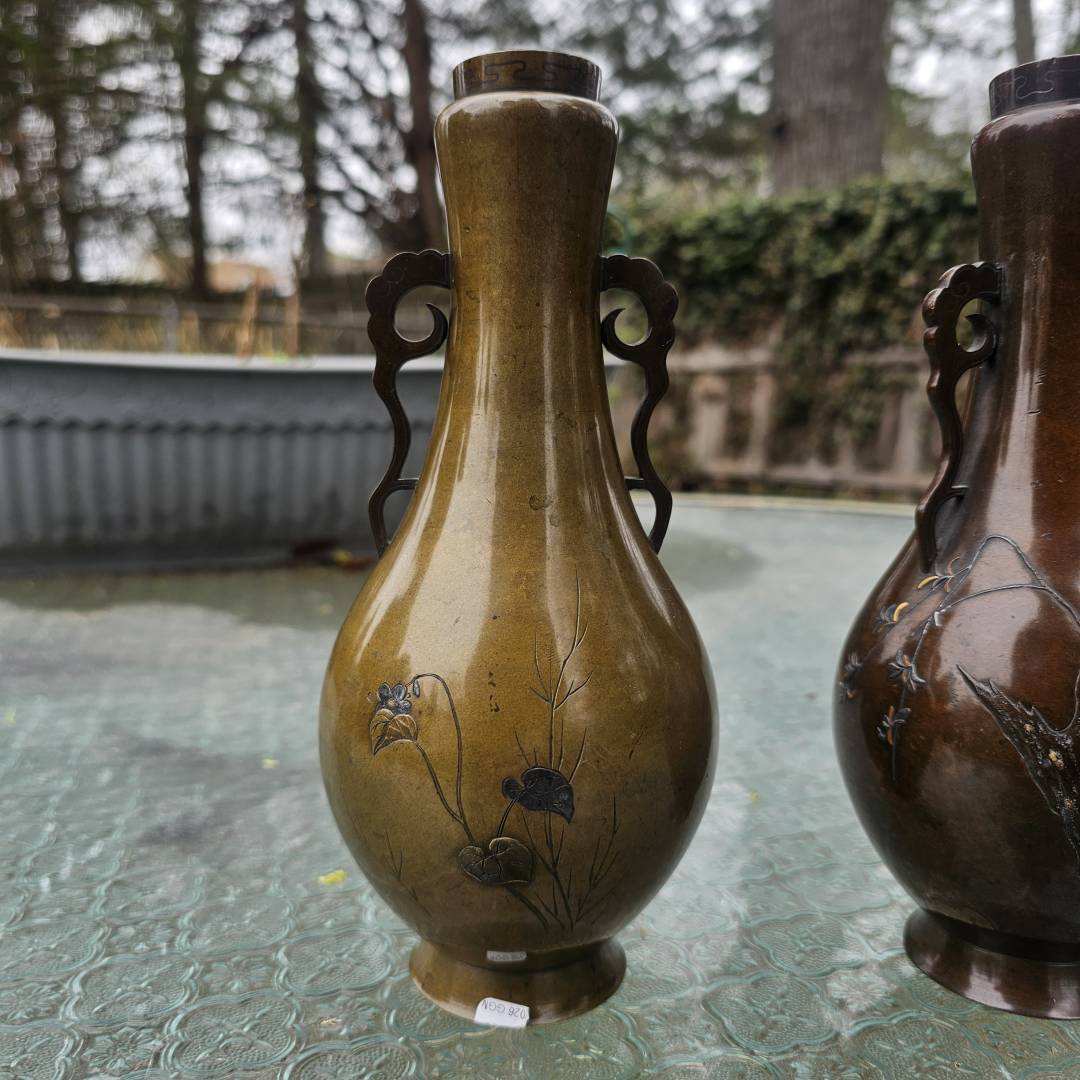 I have the opportunity to purchase this pair of mixed metal vases in the style of Suzuki's works. Im hesitant since its a small investment if they are legitimate, but the details and photos are pretty vague and unclear. The signature is missing the double-mountain signature above them, and I've only been able to see this signature on a pair listed via Waki auctions on another pair. Its currently a gamble, but from what is shown, is it likely made by him?