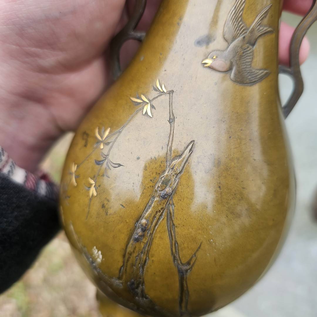 @johnshoe I like the chasing done to the birds, the one really shows some time taken to get the details done well. Glad I bought them. Interestingly enough there are several others out there marked in the same manner and quality but no attribitation given to them, almost untranslated by the descriptions. If I come across any books about him I'd definitely pick it up to study further.