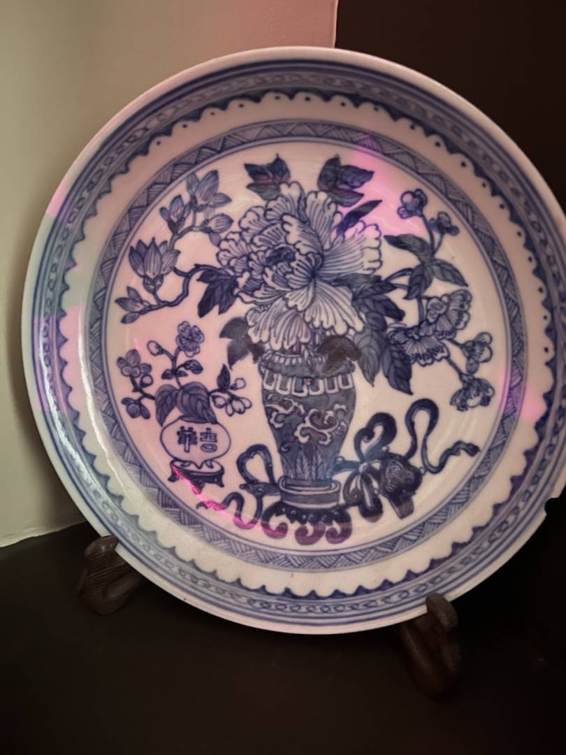 This is a transfer-decorated plate. It looks pretty new to me. Chinese, I think.