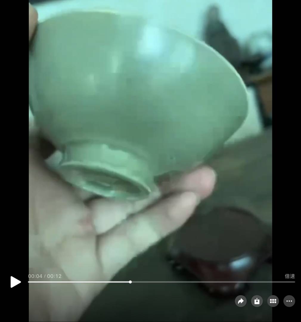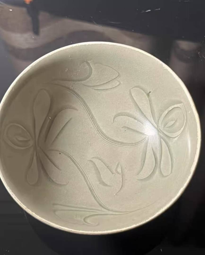 This bowl is a Longquan celadon carved-decorated large bowl from the Song dynasty. It is from the same period as mine; yours is a large bowl, while mine is a tea cup, but they are of the same date.