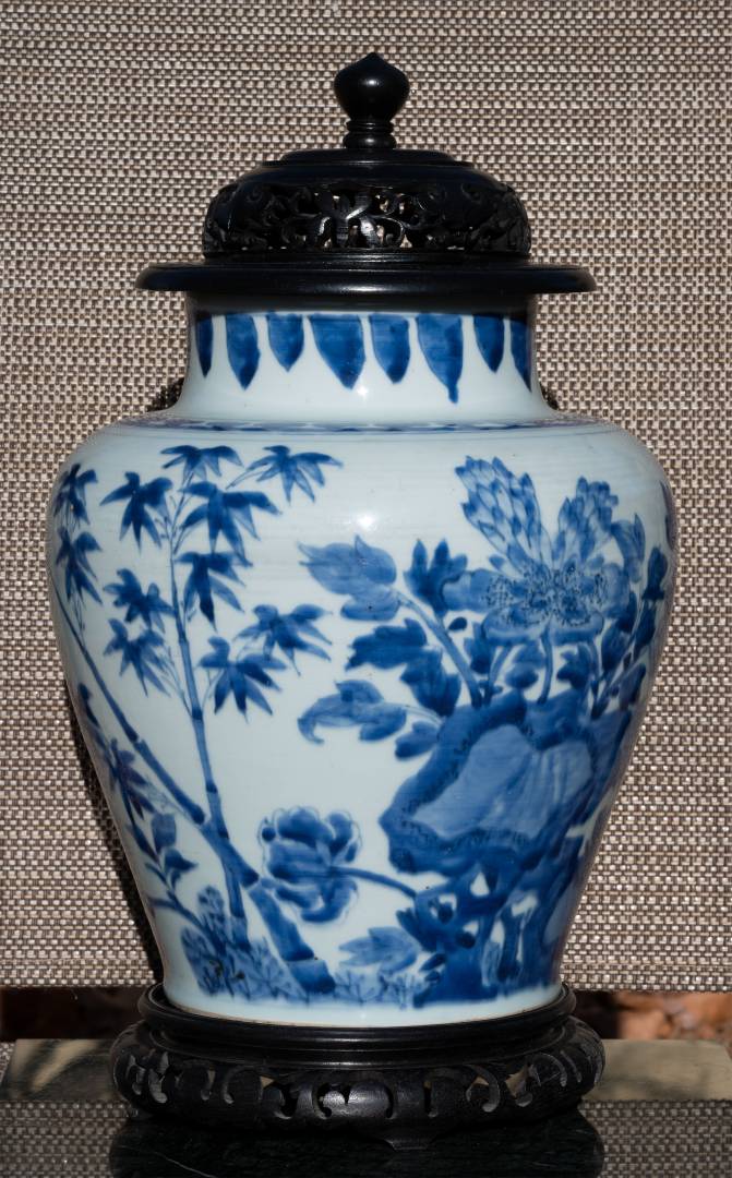 Bonhams : A large blue and white pheasant and peony jar Shunzhi period