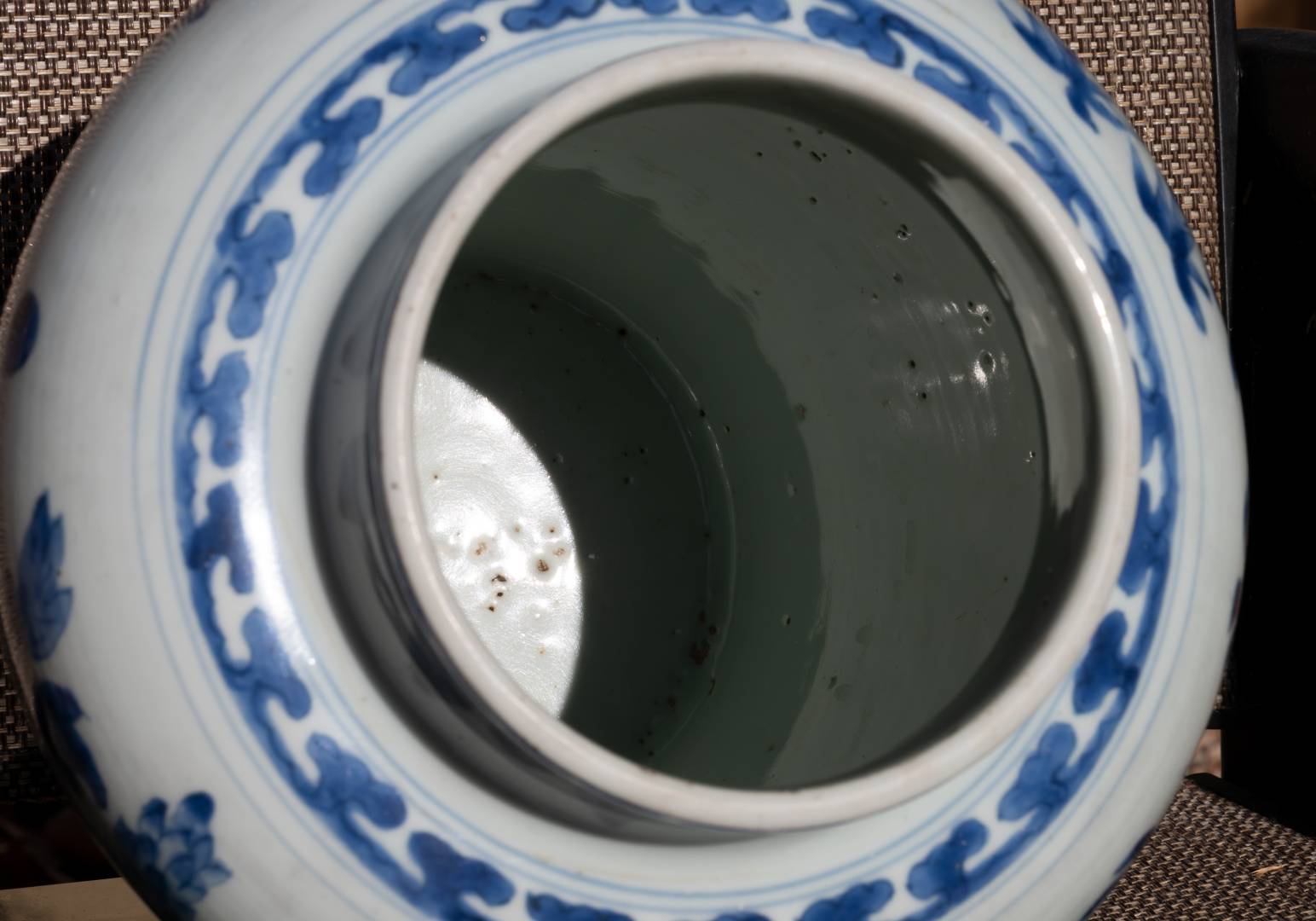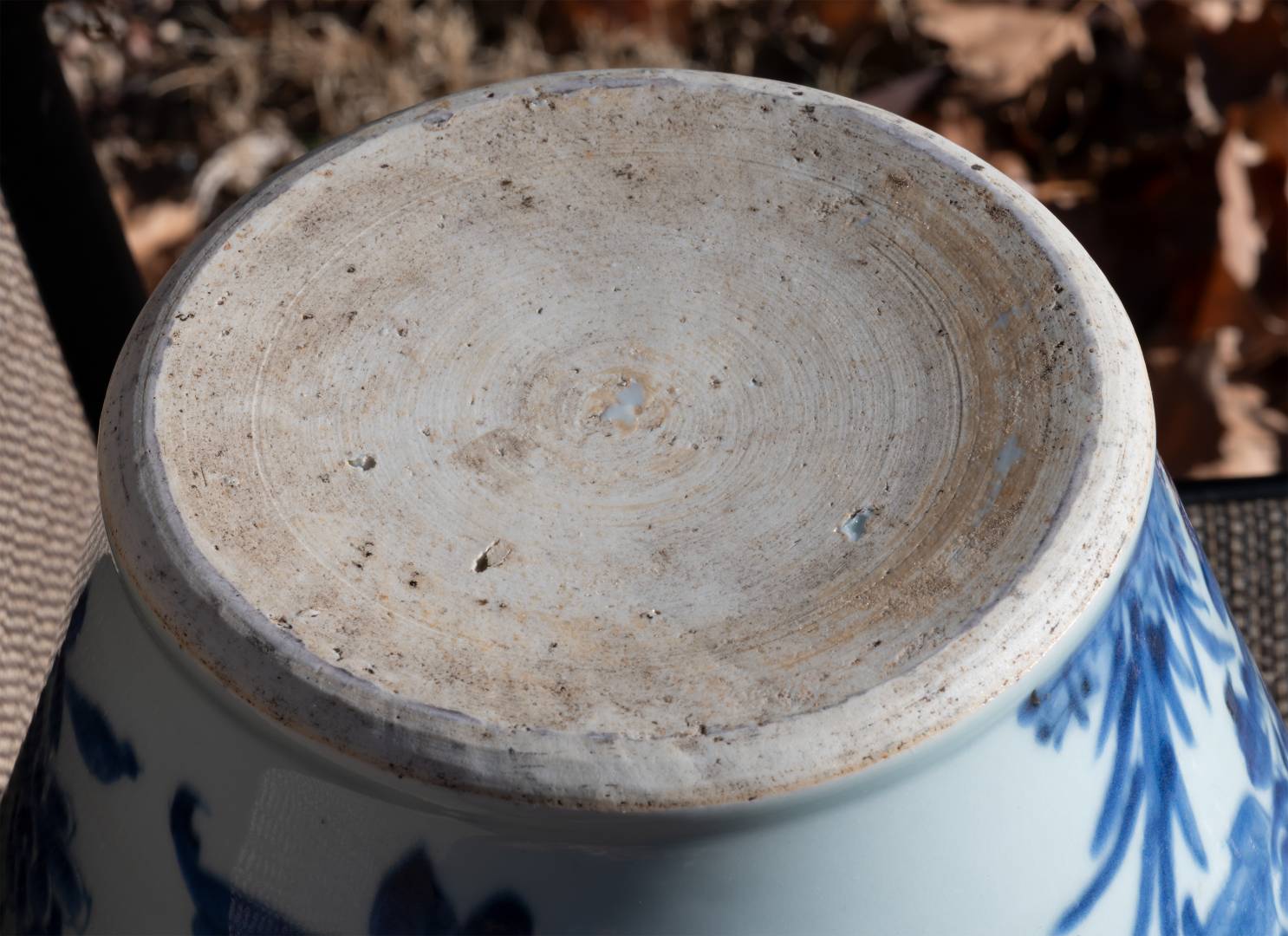 Ok, here are two more from the estate sale. This matched pair of vases is in the style of transitional vases, with decoration that is broadly similar to Shunzi or early Kangxi, at least to my eye. They are clearly hand-thrown--the inside shows that, and one shows a clear luting line. The bases are hand-cut, and have the smooth, slightly concave shape that Peter often refers to for transitional pieces. They look like they have some age. Is there any way these are actually transitional period? Or, are they modern copies?