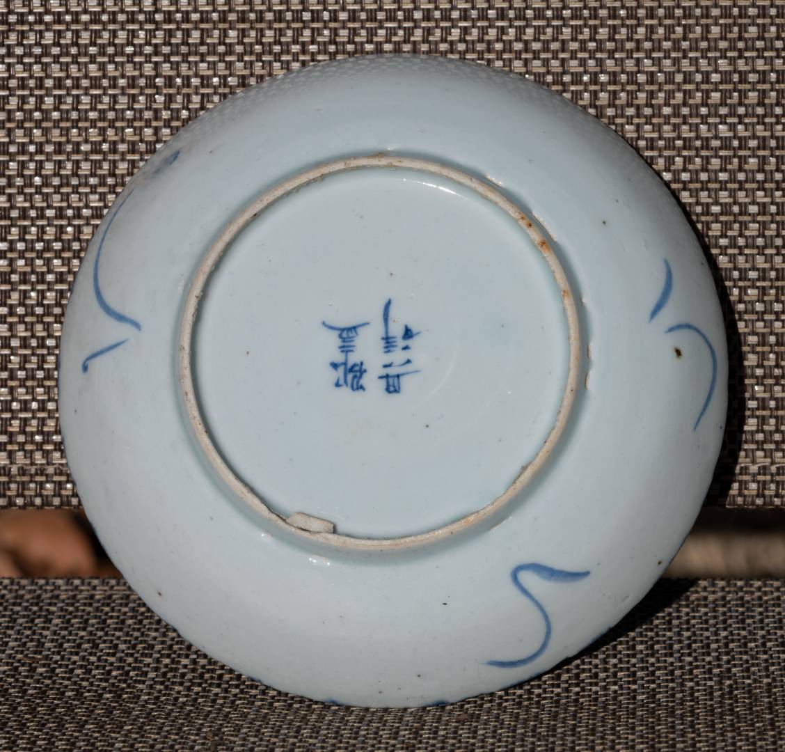 And this ewer and bird plate, which are certainly 19th century or earlier. Both the ewer and the bird plate are common enough, but are new designs for me (if anyone can translate the bottom of the bird plate, I would appreciate it--best I can do with Davison suggests it is a person's name):