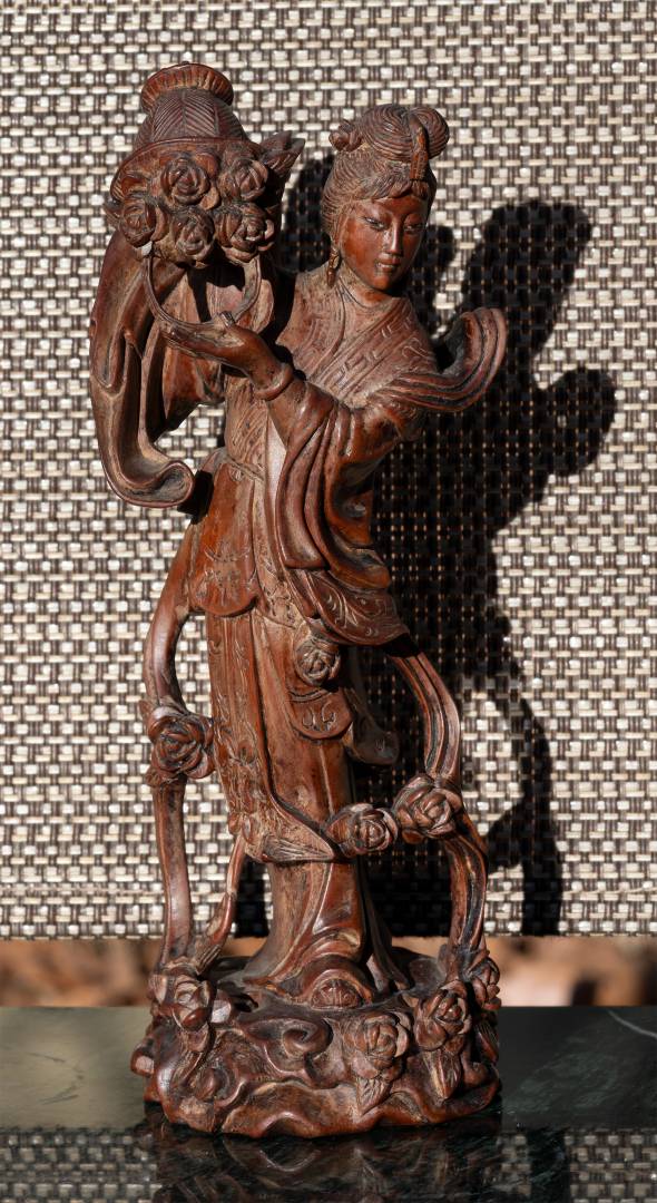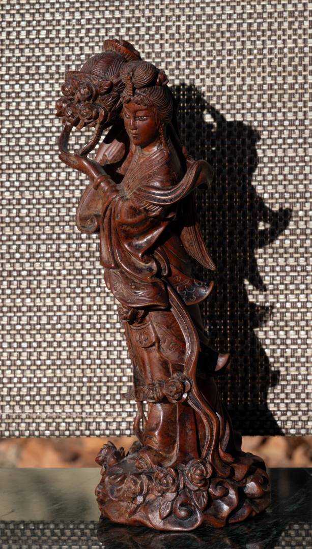 I also bought this celestial maiden spreading flowers carving, which was quite well done. I think it is only vintage, but might be as early as Republic. This is a common subject, but this one is significantly better carved than most.