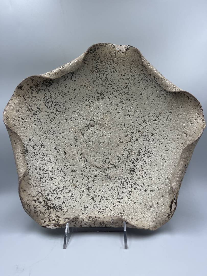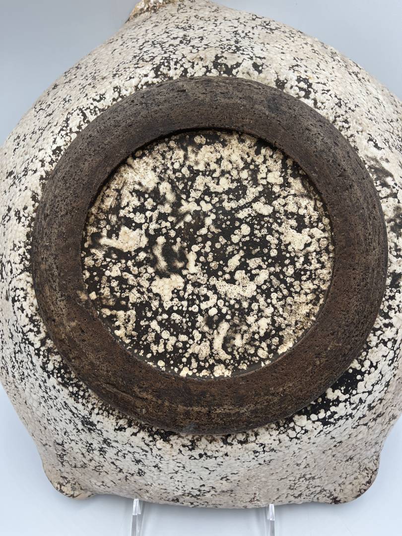 Curious on some opinions/ thoughts on this absolute stunning Japanese stoneware piece that I believe is a shino glaze type with a very interesting geometric shape/ form to it. This glaze reminds me of some abstract painting with this amazing white glaze paired with these dark/ grey patches that give it this unique texture. Was hoping there might be a couple Japanese shino collectors/ experts/ and our opinions if this is a later 19/20th century revival glaze type? Our much earlier original shino glaze type made in the Mino kilns?
