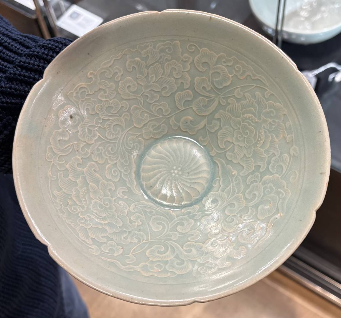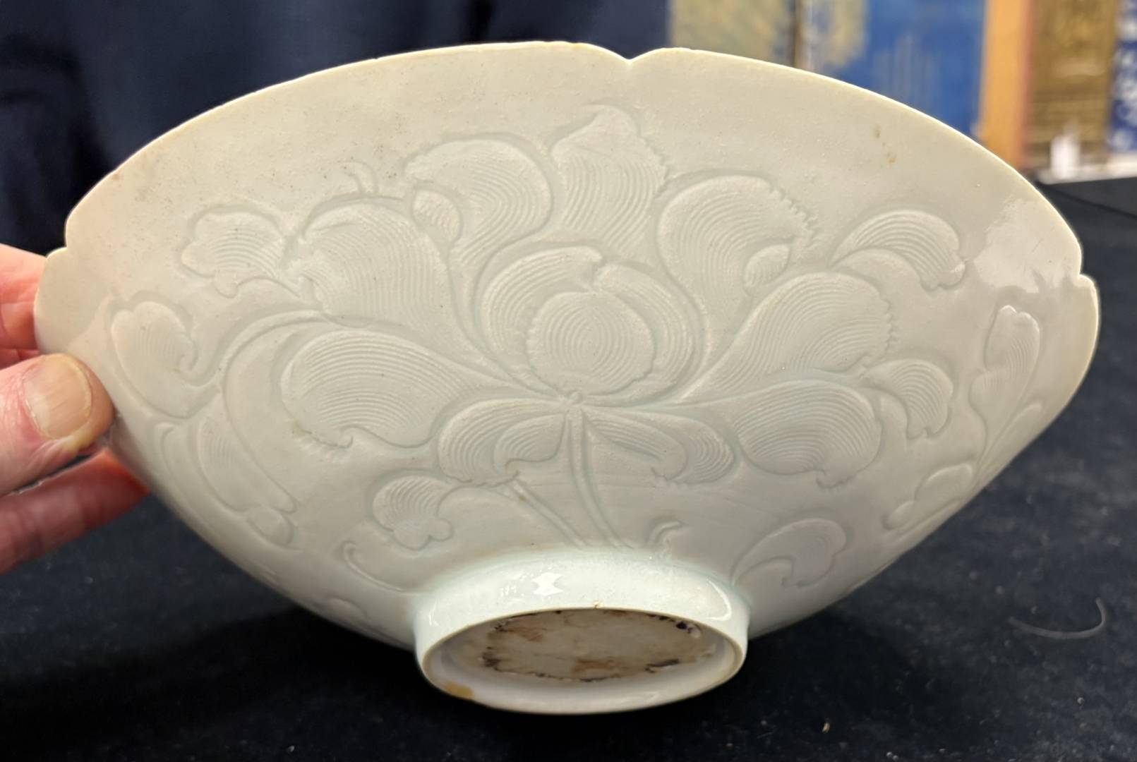 Images 10-13; a large, 21.5cm, incised Qingbai glazed lobed bowl, attributed to Northern Song dynasty