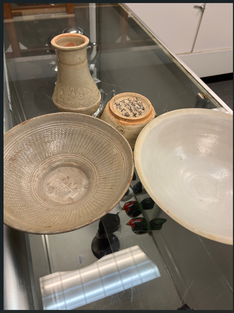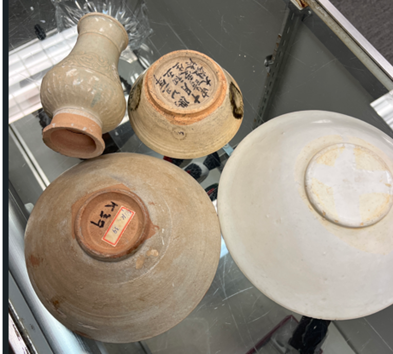 The smaller bowl was from Bidamount, described sas a 15th / 16th c south east asian bowl. It had this sticker on the side, but whether that is genuine provenance I don't know.