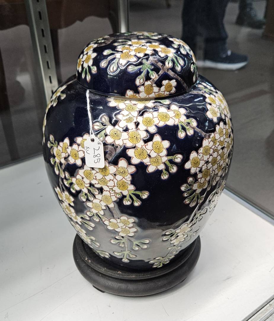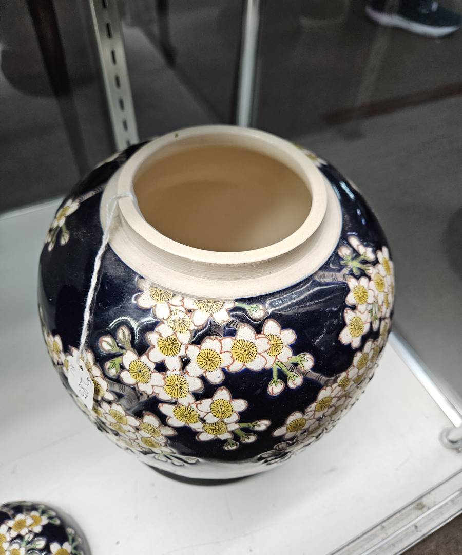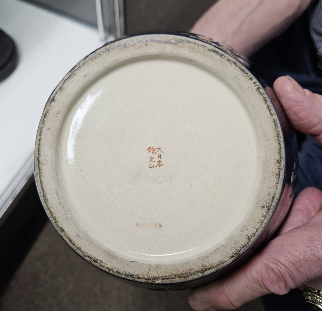 The dealer at one of my favorite stores is selling this Dai Nihon Kinkozan* jar, in great condition. From the "Nippon" mark, I think it's c. 1920? I don't have room for it but I thought it would be fun to share photos. According to what I could find, this potter is known for Satsuma. This looks like it could be earthenware but it doesn't have the Satsuma glitzy gold - could it be considered such anyway?