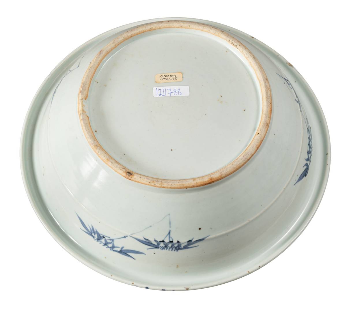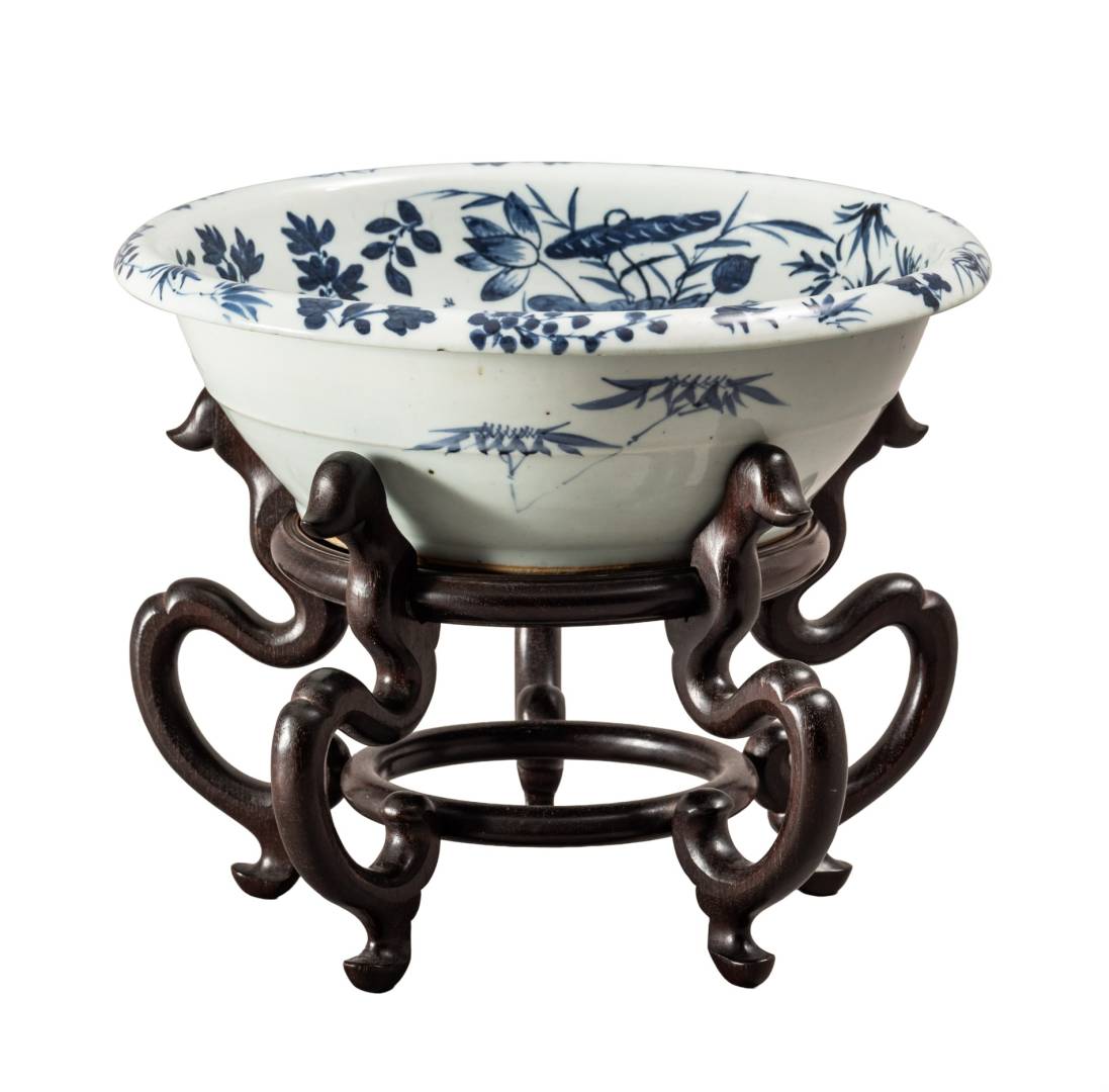 Large Chinese blue & white basin, Qing dynasty.