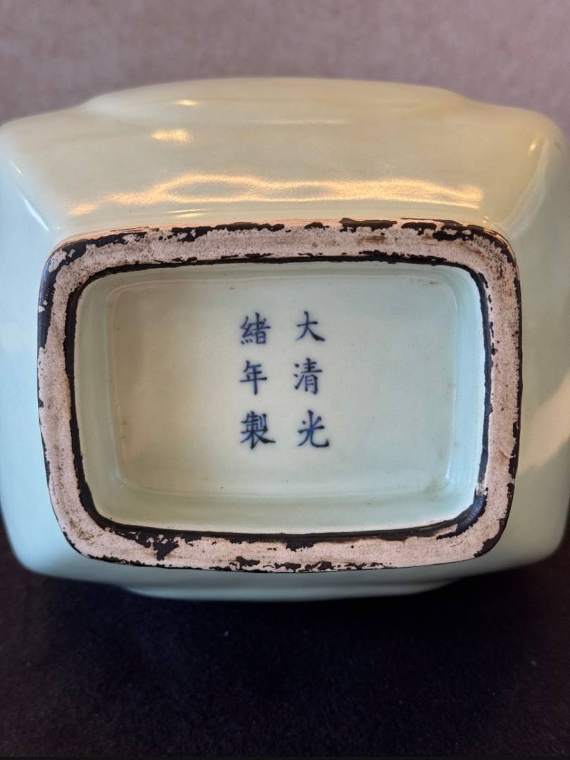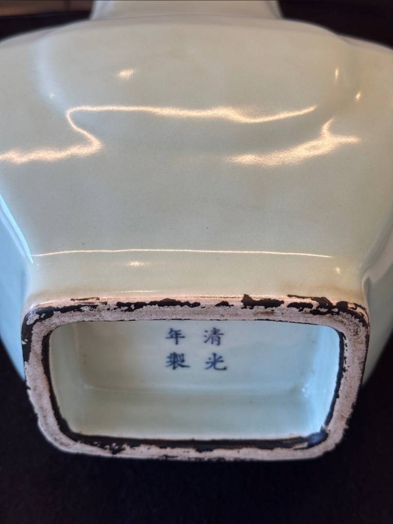 The other one was imo and after carefully examining it a genuine example. It's a celadon HU vase and has a undergazed blue guangxu mark and is of the period. It has a nicely fitted stand and measures just over 30cm.