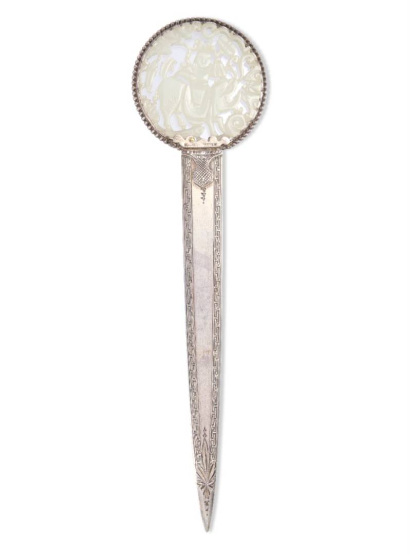 In the past, I have seen some Chinese silver pieces with inlaid jade figurines. The problem, however, is the relatively low quality of the carving, as they were produced in the late Qing or Republic period, but I believe they are very important for studying original carving techniques