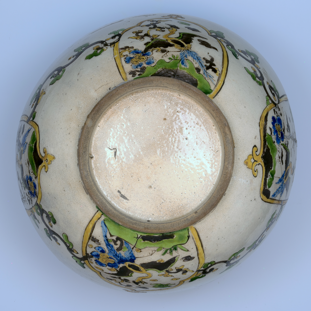 I have not yet been able to pin this bowl down to a date or a kiln. I think it might be late 17th Century and probably comes from Arita or very possibly from the original Kutani Kiln, or maybe both. There is so much new research currently being published that whatever I decide is promptly shown to be wrong. I am no longer even 100% sure that it is Japanese.