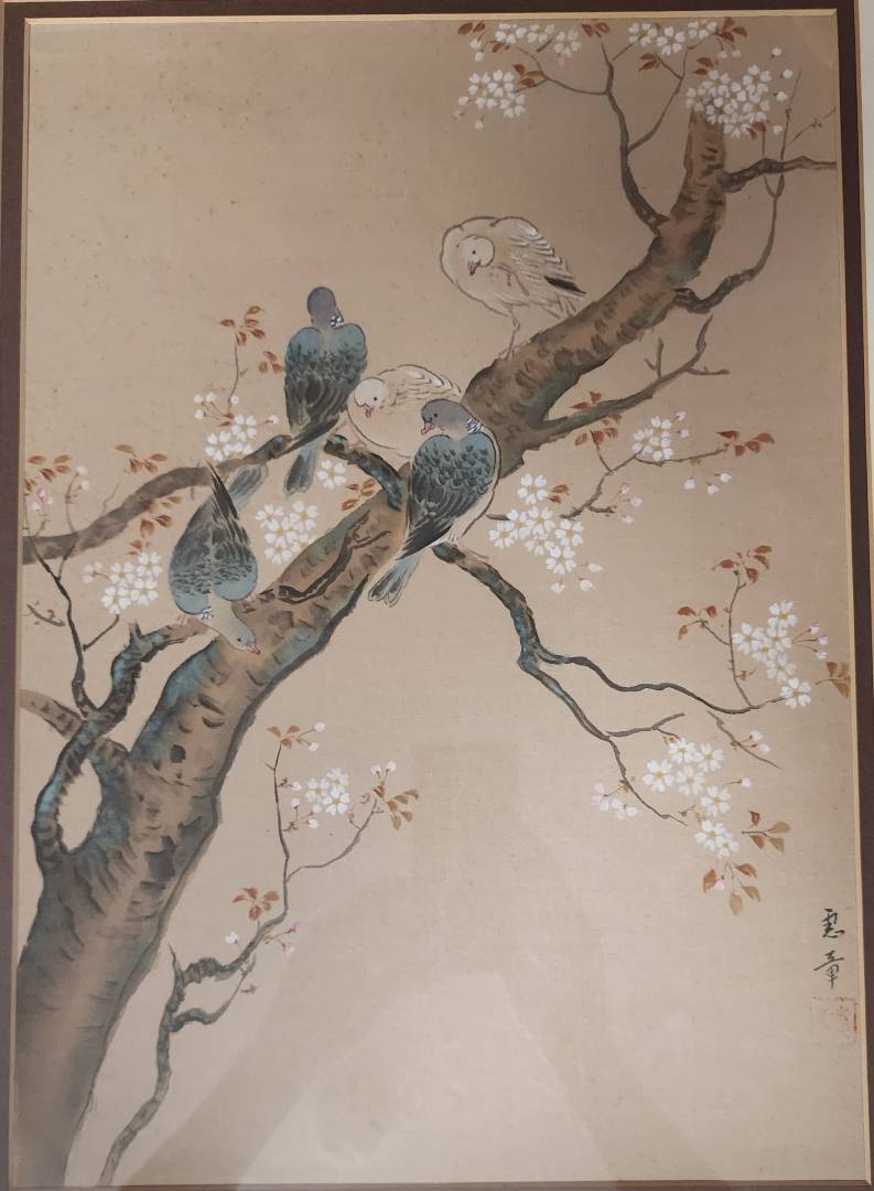 More thrift store scores. Wood Doves, watercolor on silk. The back paper tag says Koson but I don't think it is. 1930's Japanese watercolor